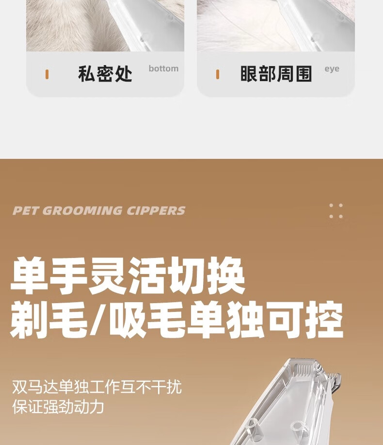 HELLOLEIBOO Pet Shaving and Suction All-in-One Silent Dog and Cat Pedicure Partial Shaving Electric Clipper Pearl White - Integrated Shaving and Suction Clipper
