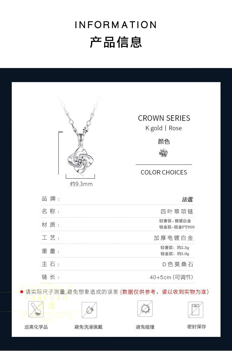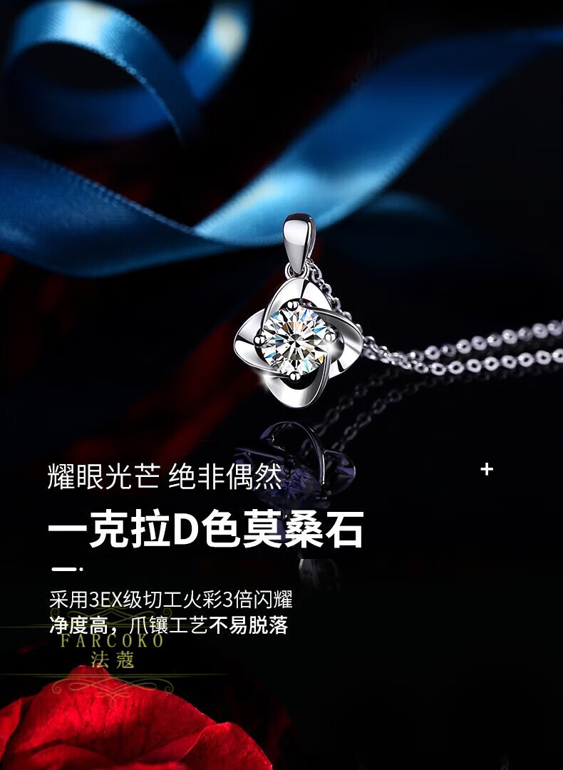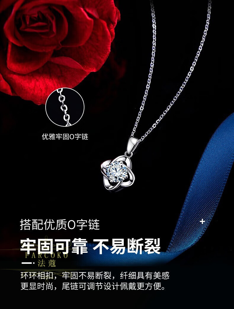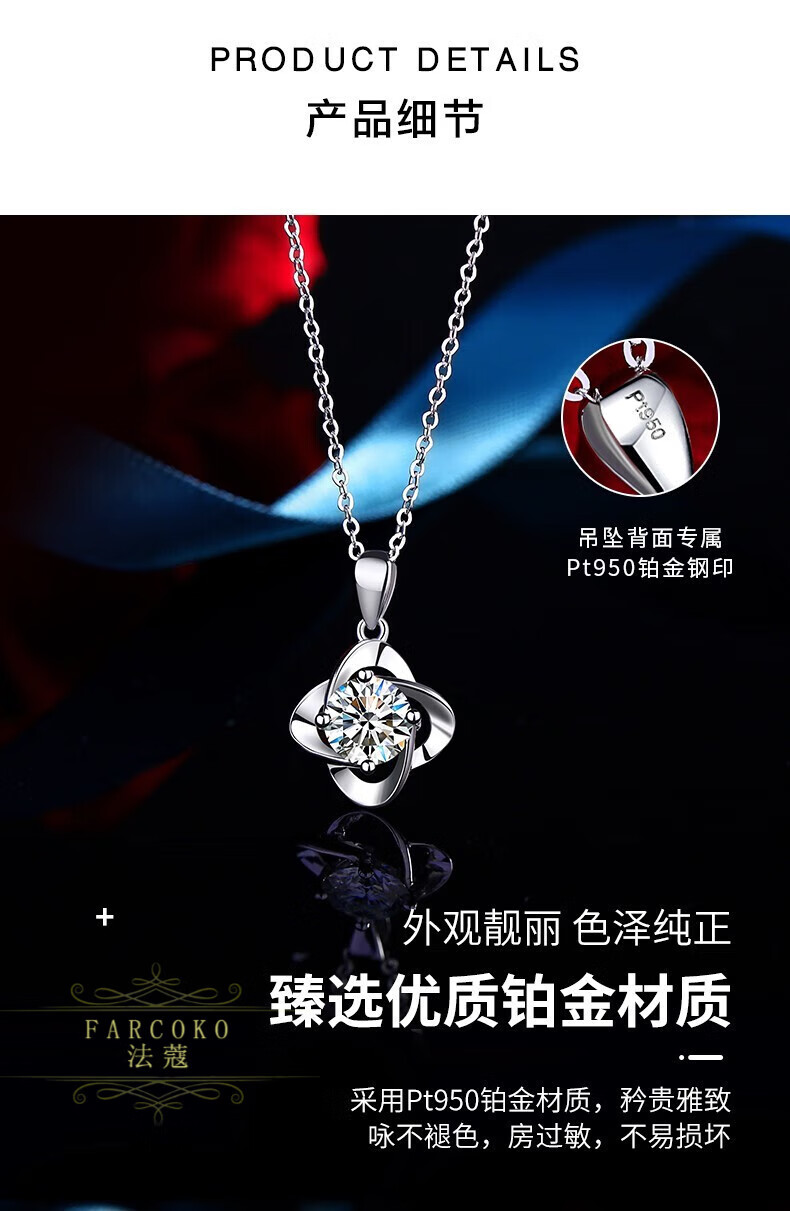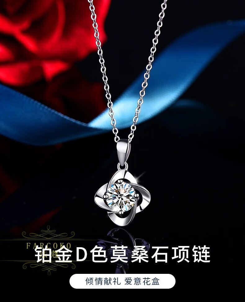 Farcoko PT950 platinum necklace women's new four-leaf clover light luxury niche clavicle chain Chinese Valentine's Day birthday gift for girlfriend light luxury model - set with D color flawless moissanite