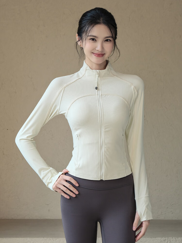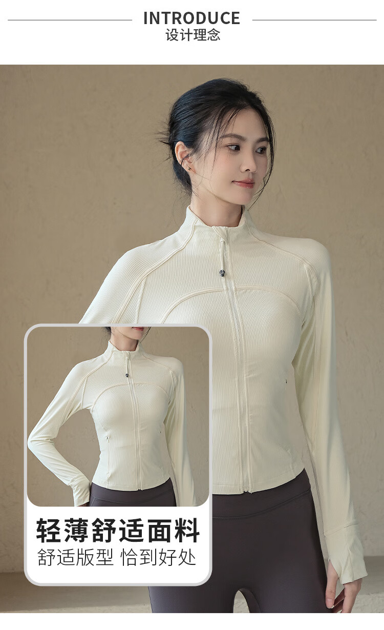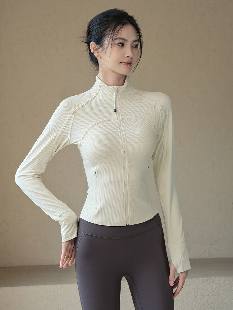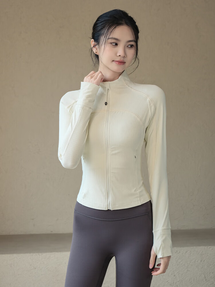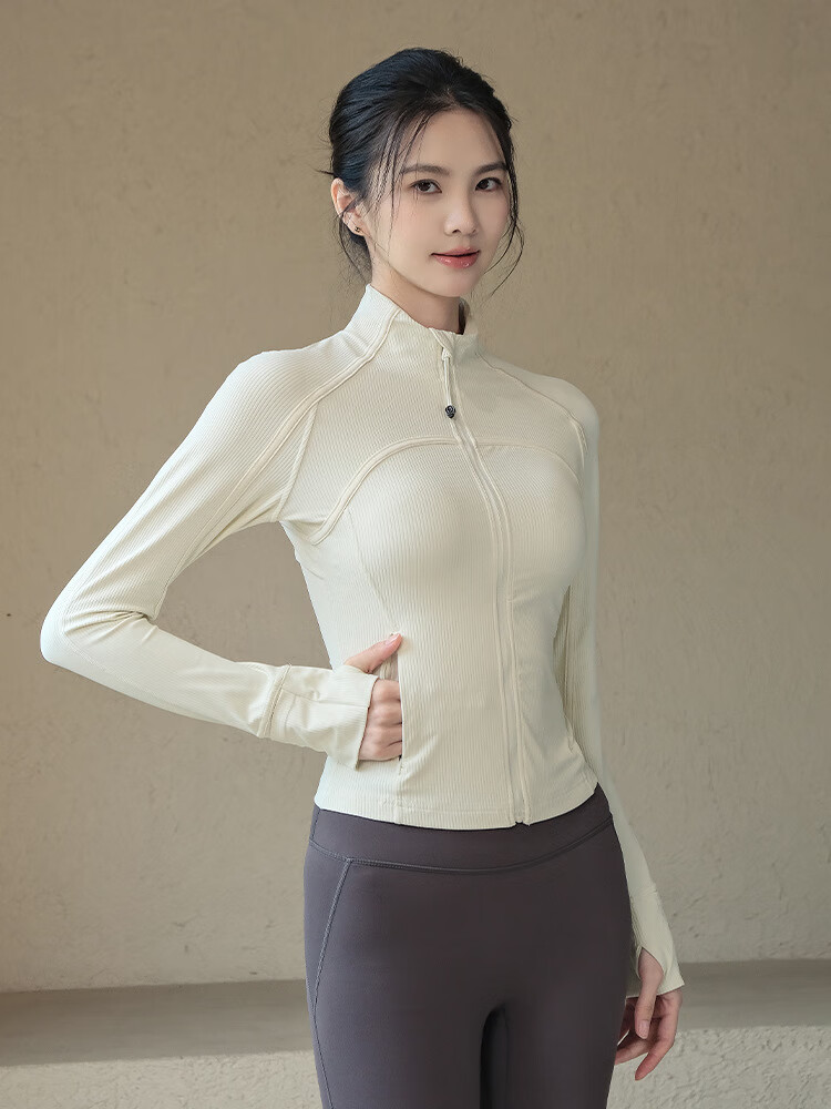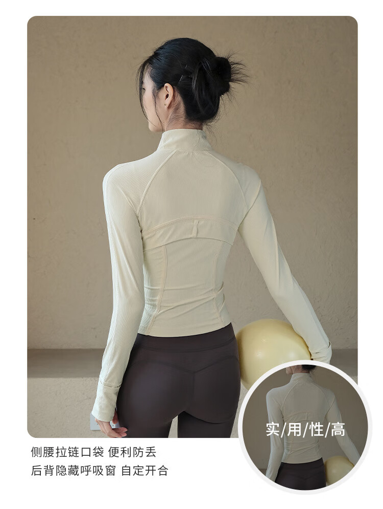 LULUUVTTOH Yoga Wear Jacket Women's Autumn and Winter New Ribbed Sports Top Long Sleeve Running Pilates Training Fitness Wear Women's Wild Berry Color M