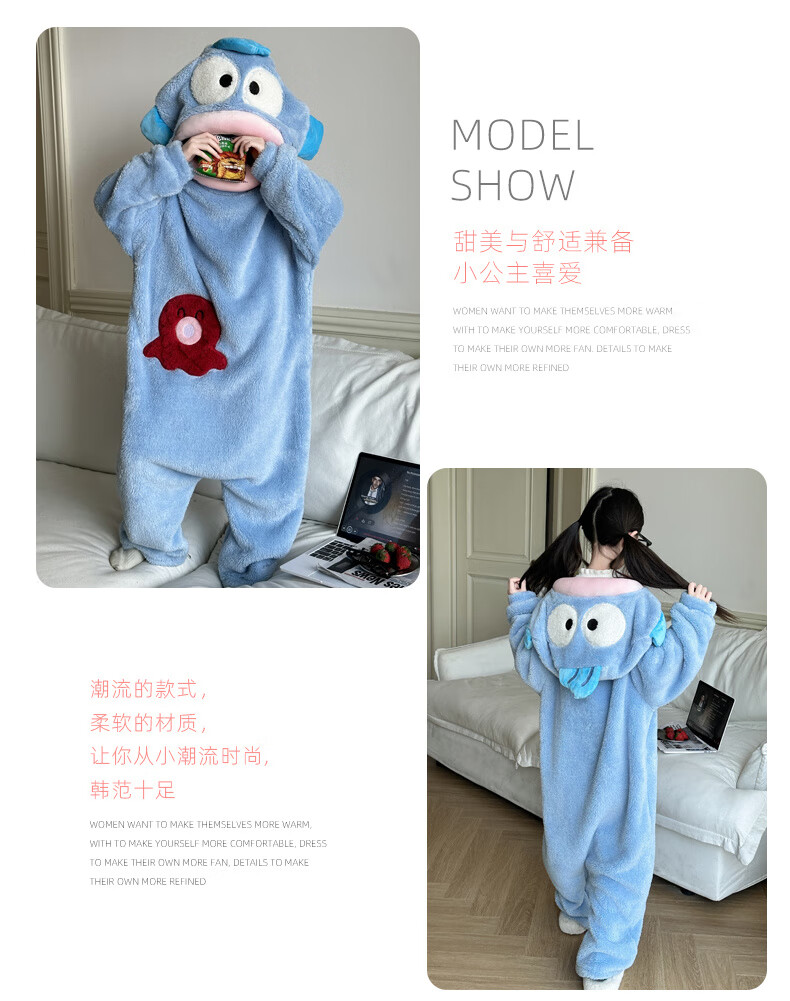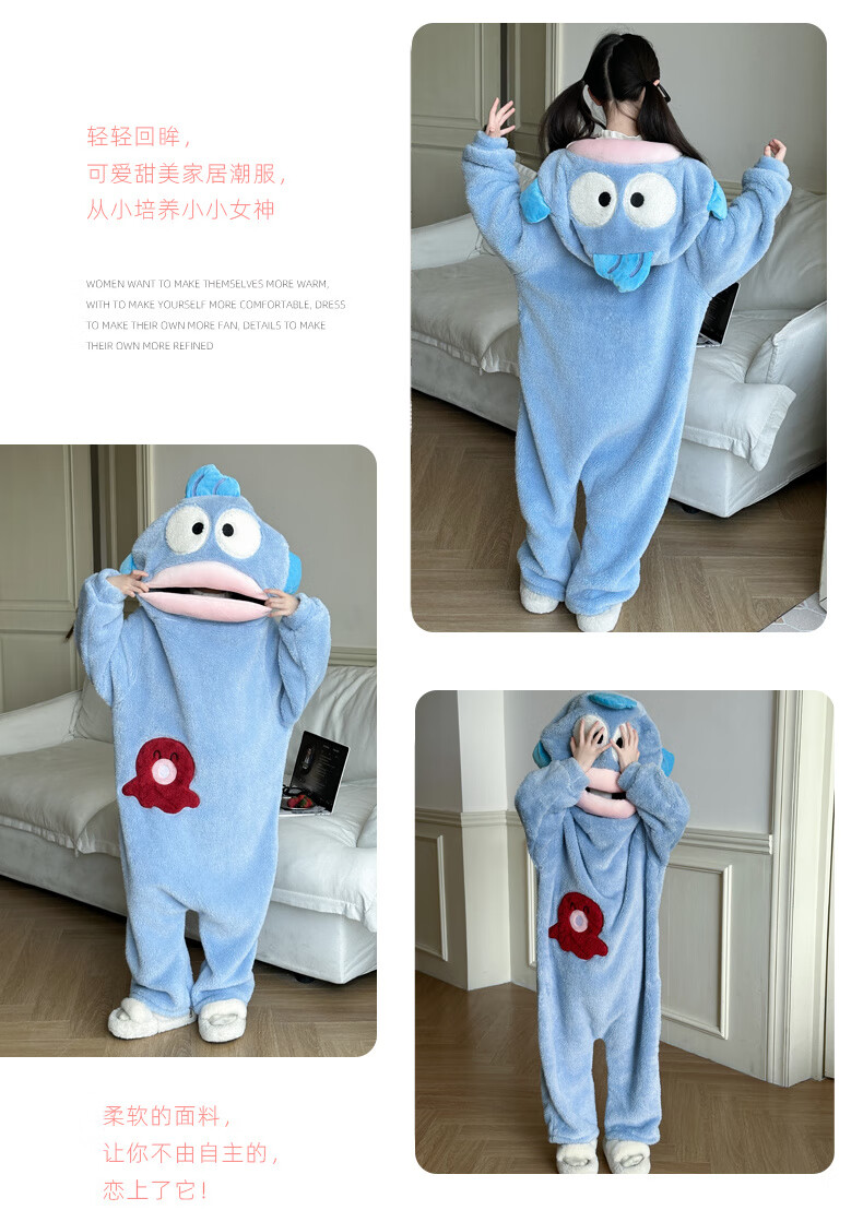 Oxygen Ugly Fish Pajamas Big Head Ugly Fish Children's Funny One-piece Pajamas for Boys and Girls Autumn and Winter Thickened and Velvet Home Clothes Ugly Fish Thickened and Velvet One-Piece Style Children's Style Without It One Size S Size 145-155cm 68-85Jin Jin is equal to 0.5 kg
