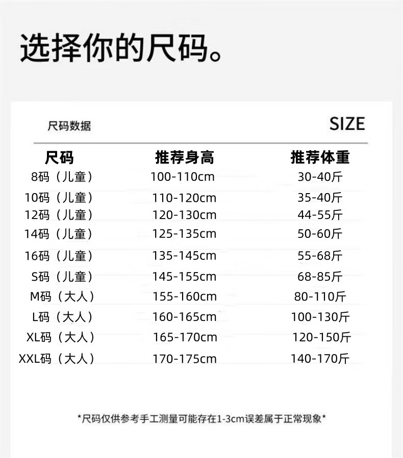 China (cm) 165 / 88-90 170 / 96-98 175 / 108-110 180 / 118-122 185 / 126-130