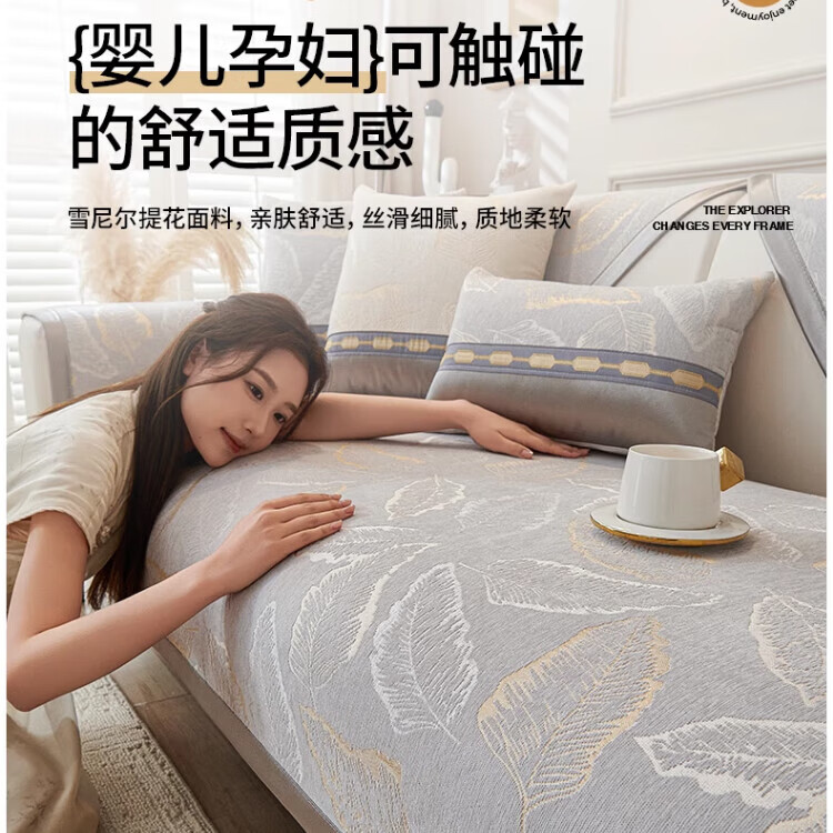 Xuanjia sofa cushion high-end sofa towel light luxury 2025 popular four-season straight-row leather sofa seat cushion non-slip Qianye-off-white universal four-season 70cm*70cm can be used as a backrest/armrest towel