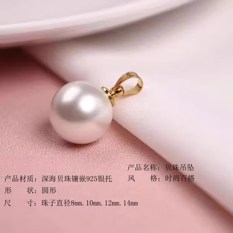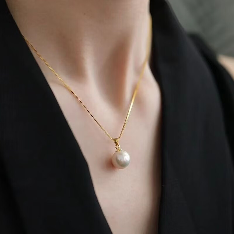 Fat Donglai same style pendant pearl women's s925 plated 18k gold single round shell bead new temperament necklace rose white silver drag 8mm