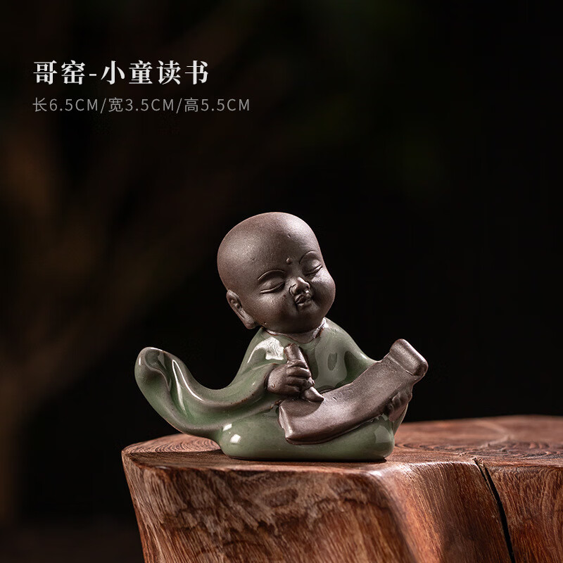 An Junsheng Guofeng Ceramic Ge Kiln Flower Pet Tea Pet Ornament Tea Play Car Tea Tray Flower Pot Decoration Little Monk Reading and Taking a Break
