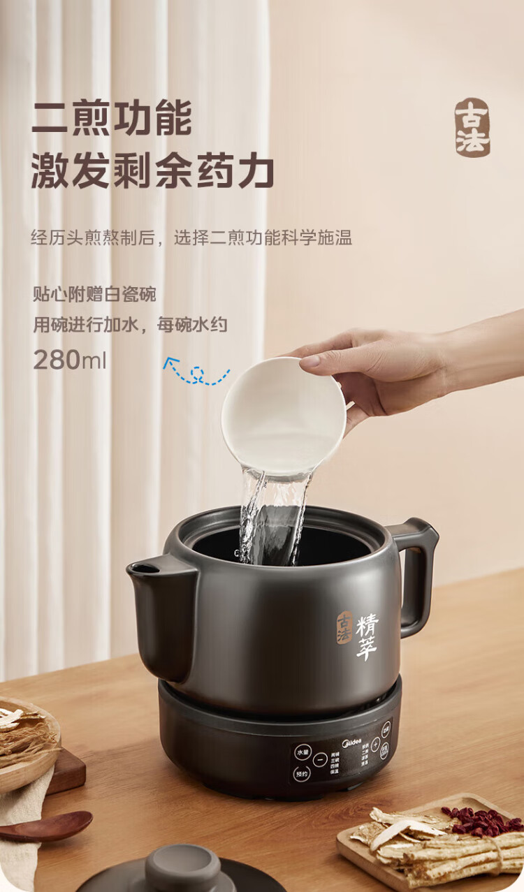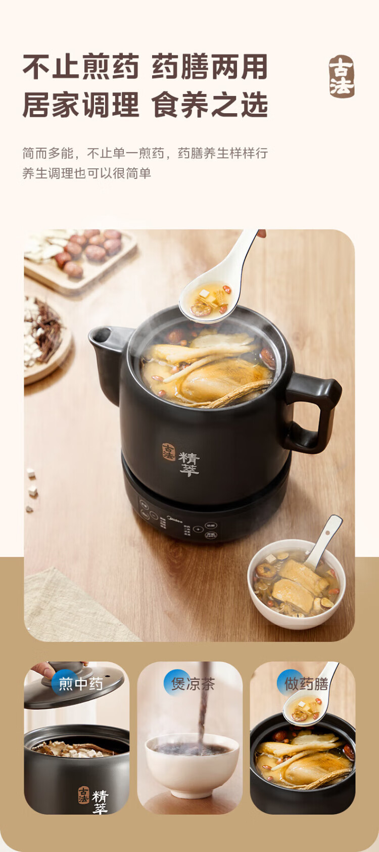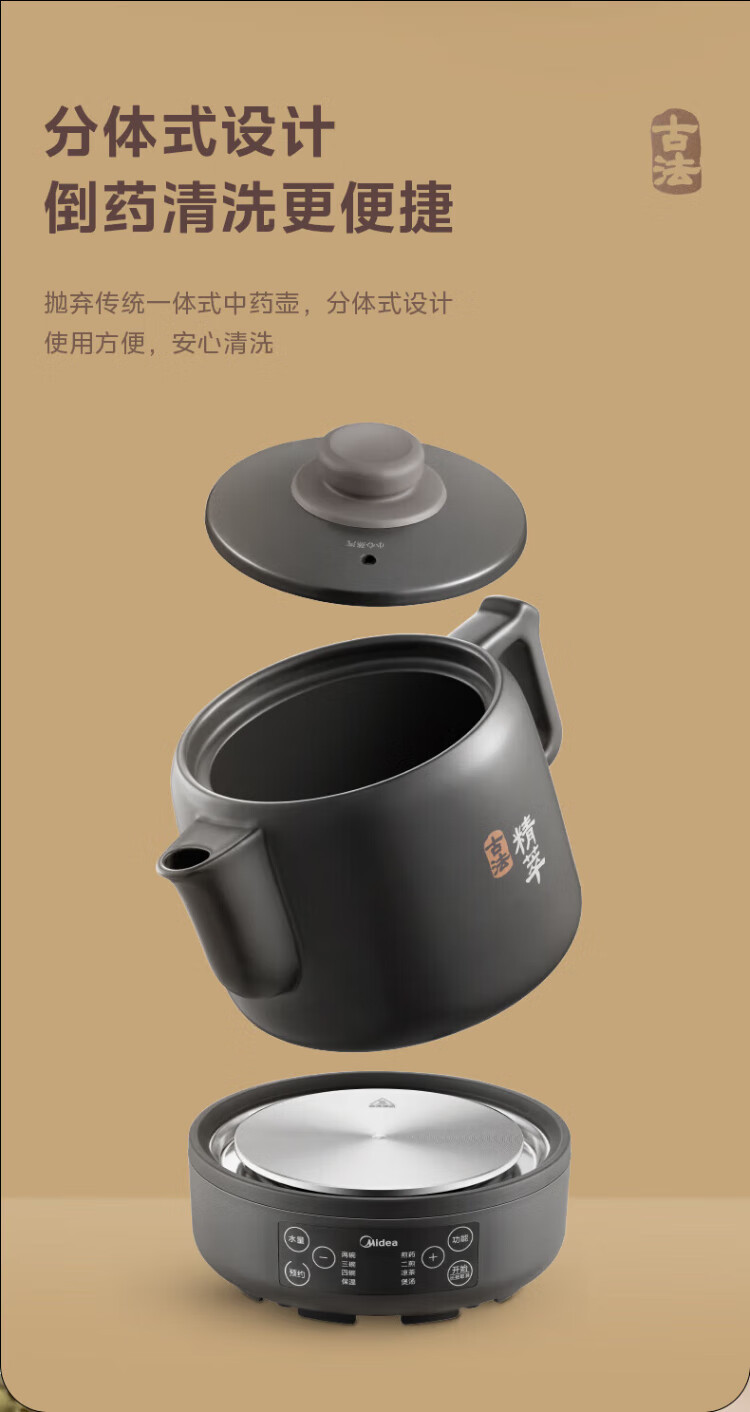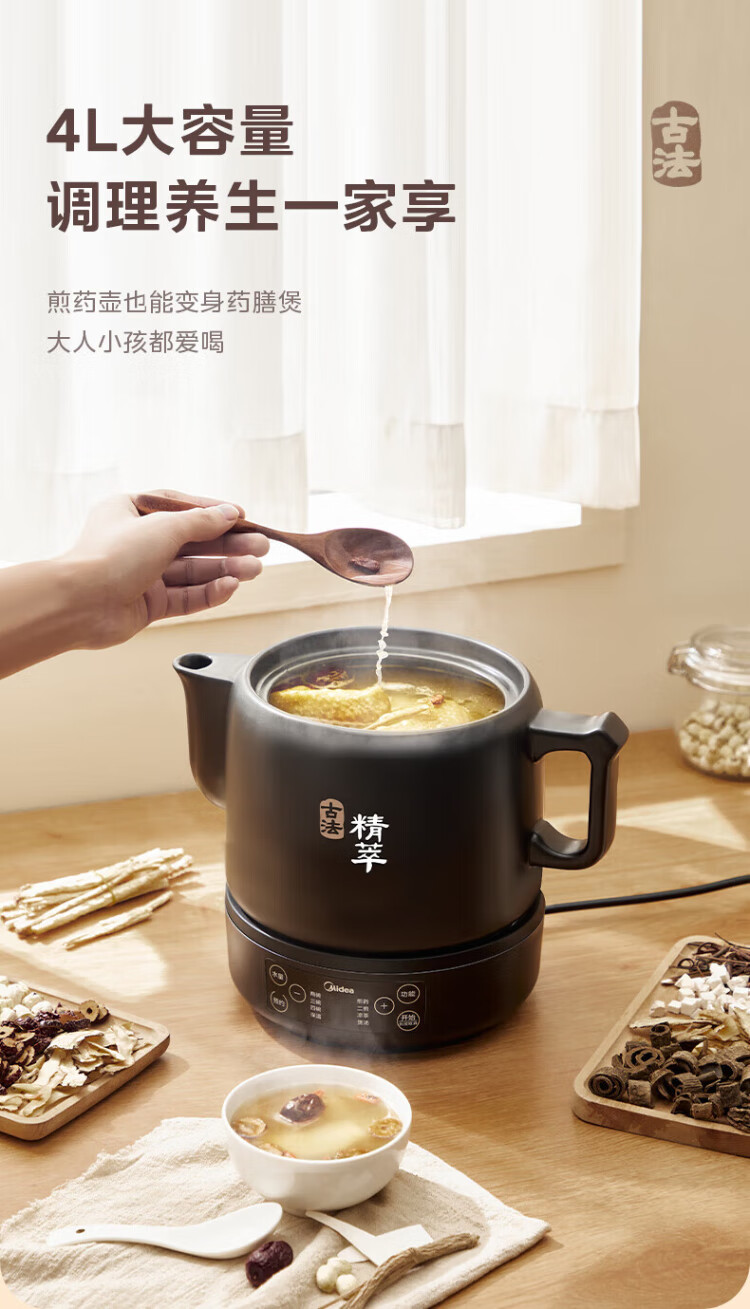 Midea Chinese medicine electric frying kettle, fully automatic medicine boiling pot, household large-capacity multi-functional traditional Chinese medicine casserole medicine jar, intelligent and free of supervision, one pot with multiple uses - Hot Sale 3L