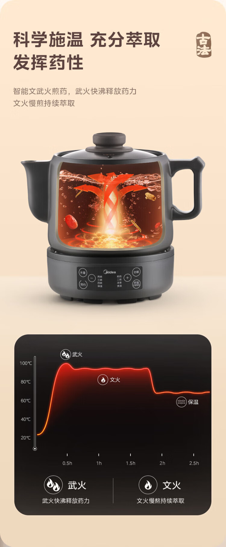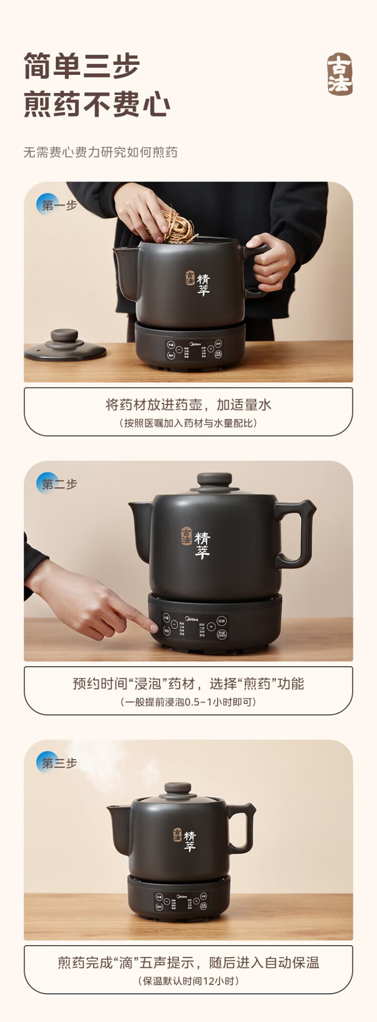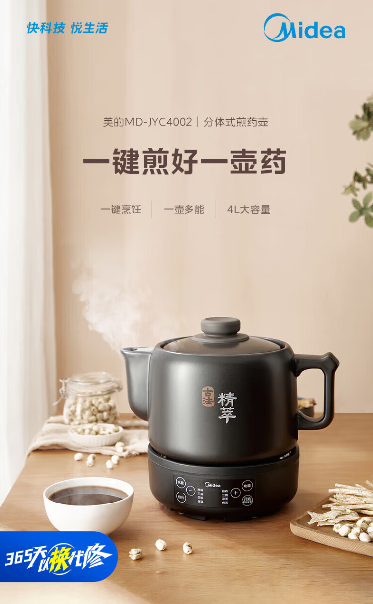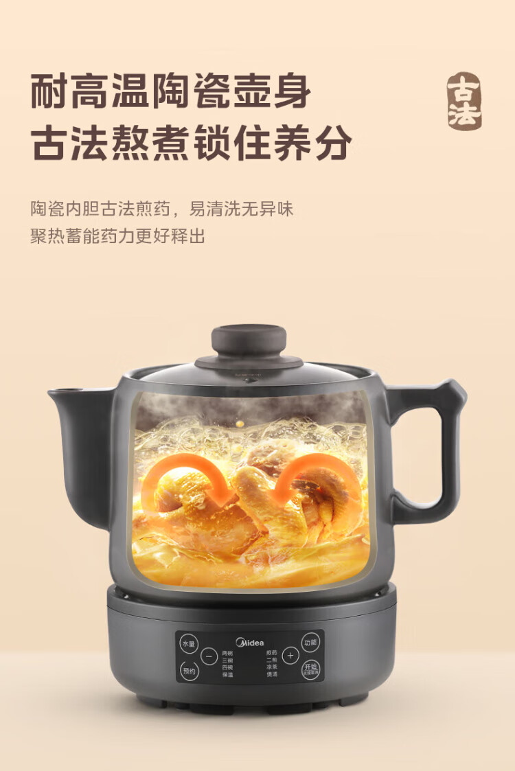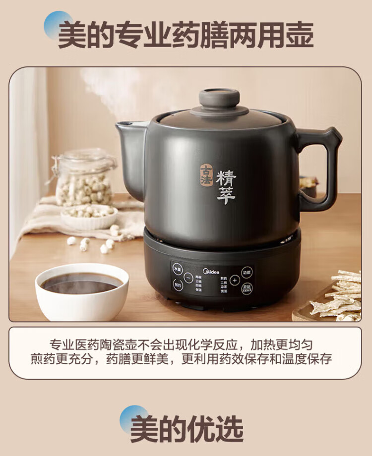 Midea Chinese medicine electric frying kettle, fully automatic medicine boiling pot, household large-capacity multi-functional traditional Chinese medicine casserole medicine jar, intelligent and free of supervision, one pot with multiple uses - Hot Sale 3L