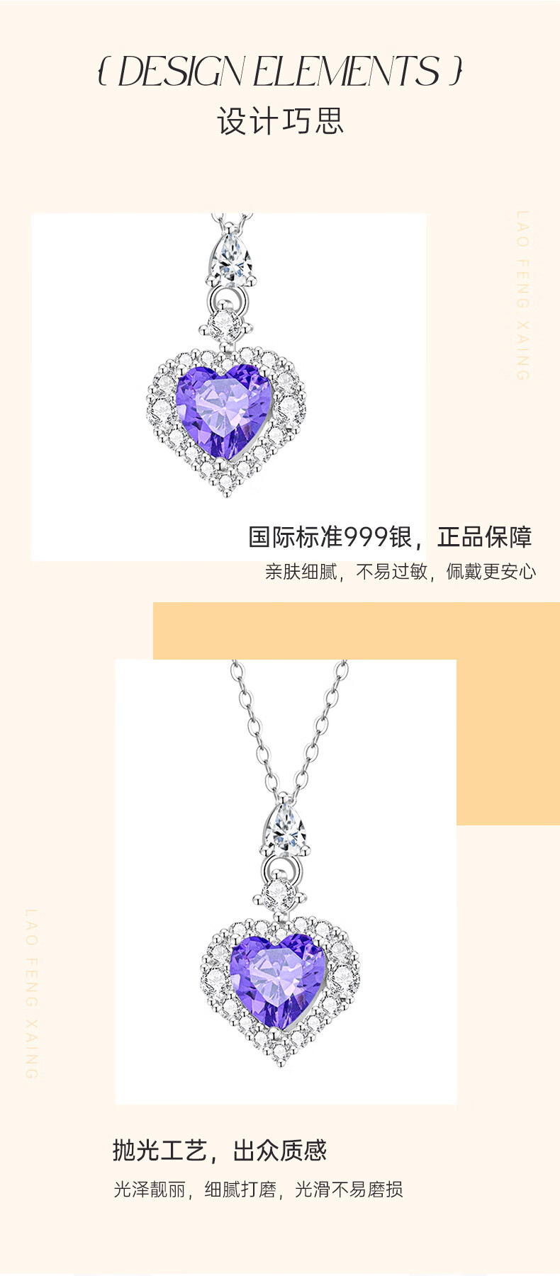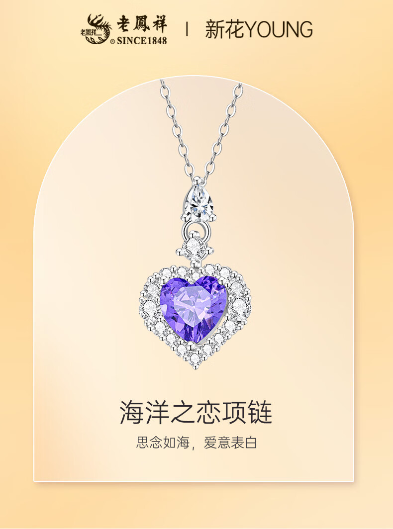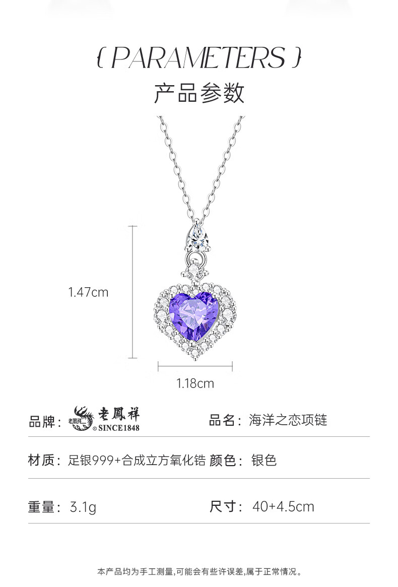 Lao Fengxiang Pure Silver 999 Necklace for Women Heart of the Ocean Love Pendant Jewelry Birthday Anniversary Gift for Girlfriend and Wife Skin Friendly Pure Silver * Heart of the Ocean * Brand Gift Box