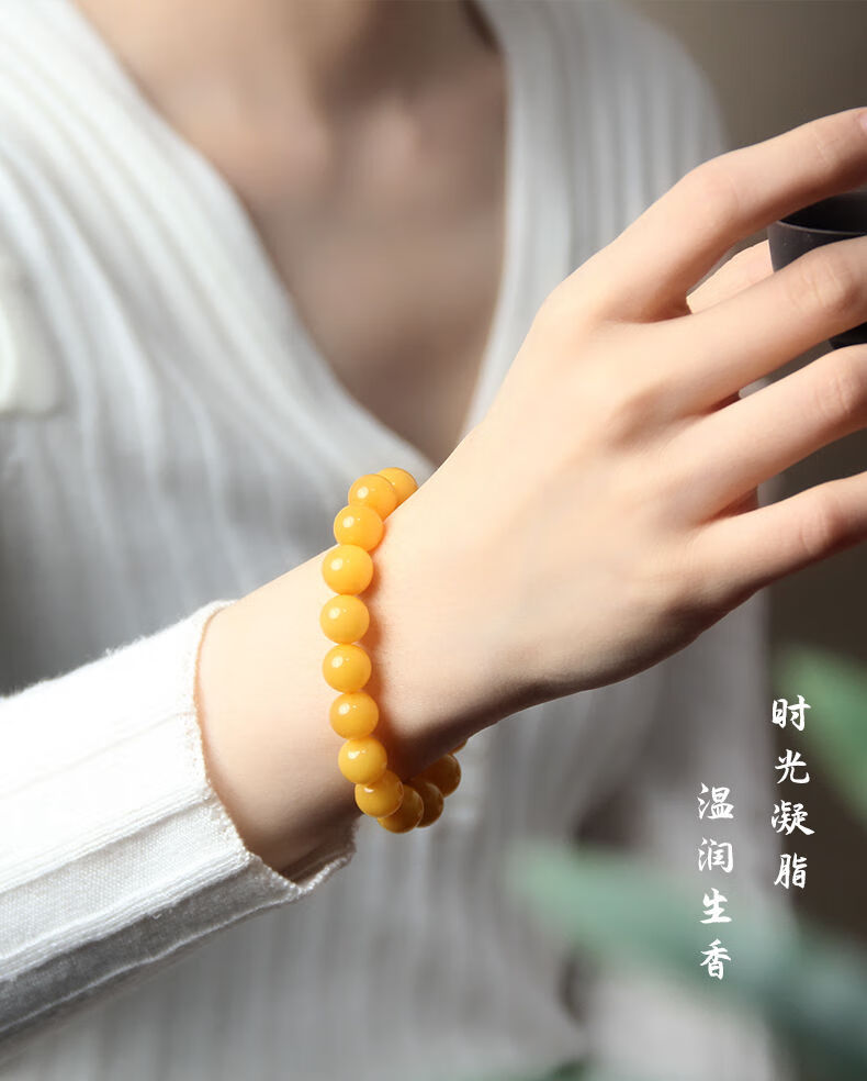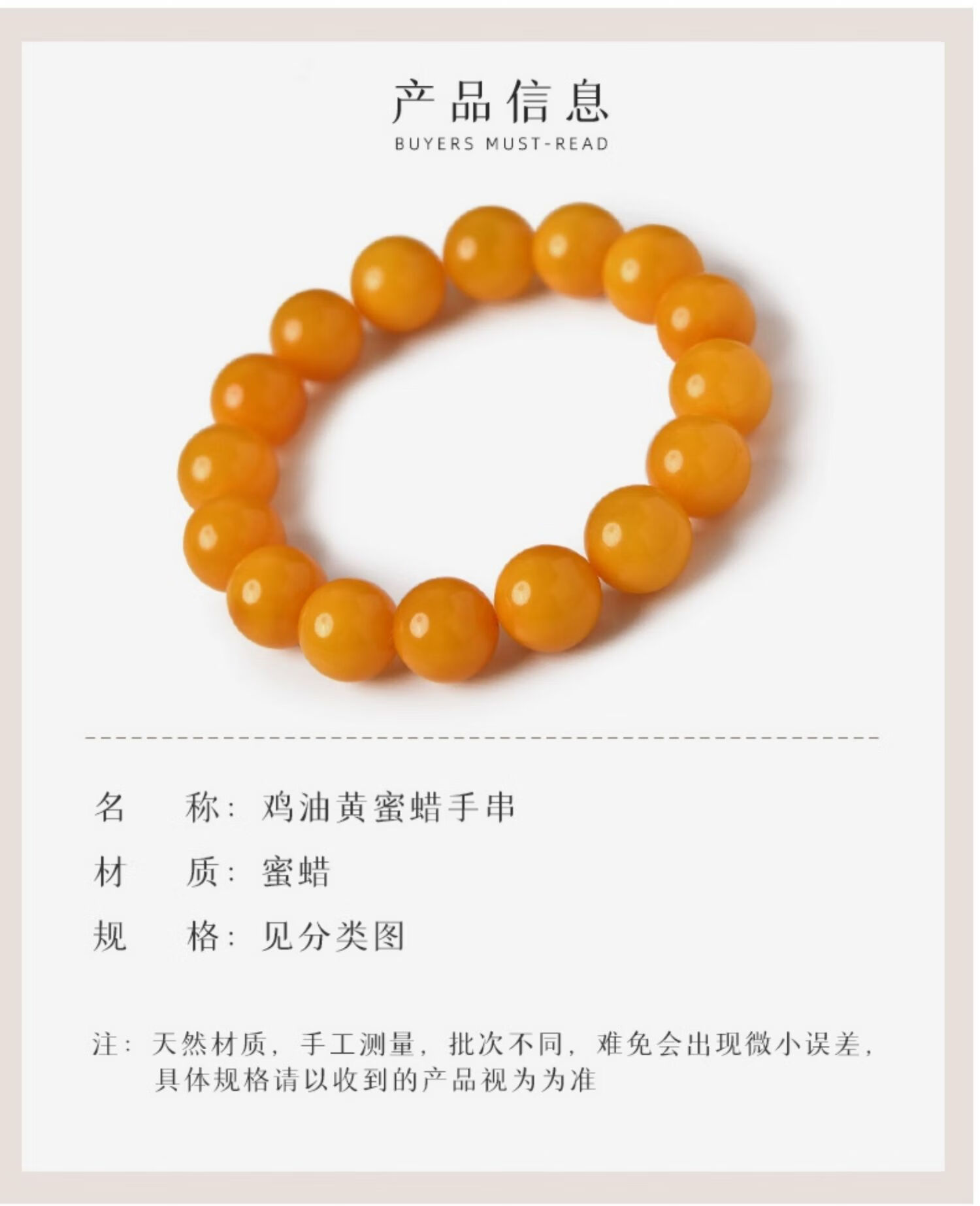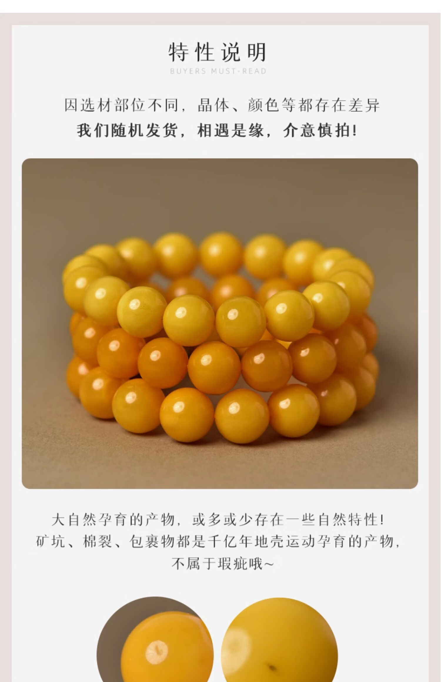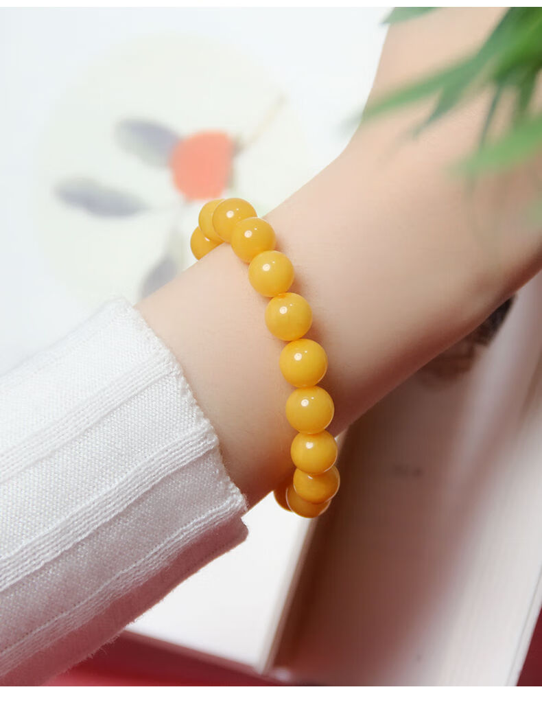 Time Bird Beeswax Bracelet for Men and Women Yellow Crystal Agate Jade Single Bead Scattered Beads Amber Raw Stone Chicken Fat Yellow Beeswax Bracelet Collection Grade Chicken Fat Yellow About 12mm