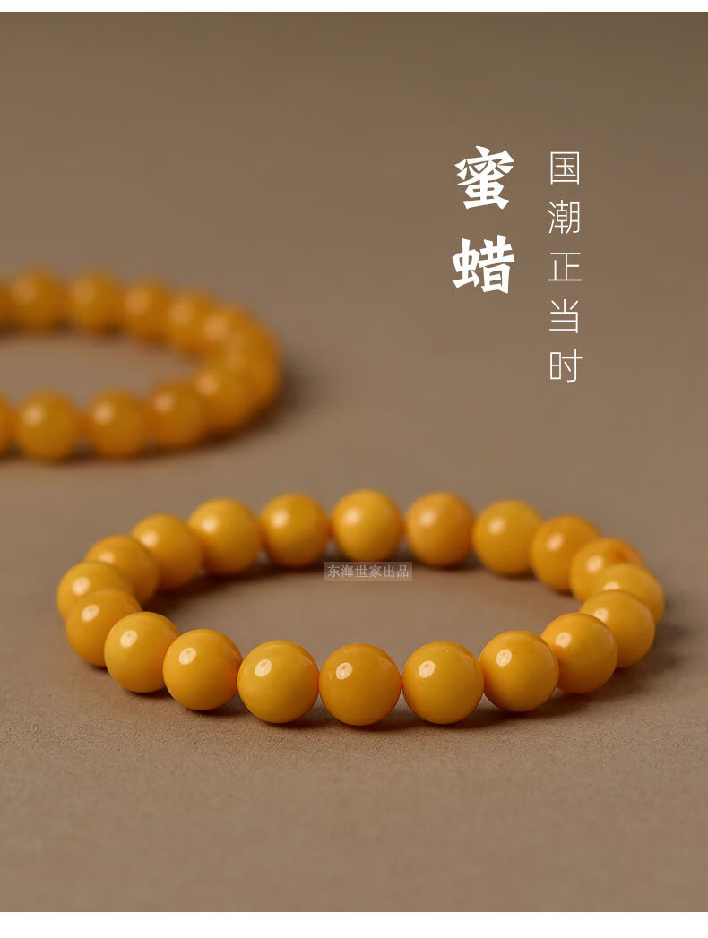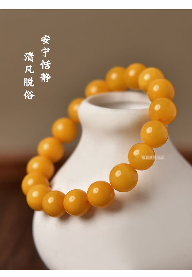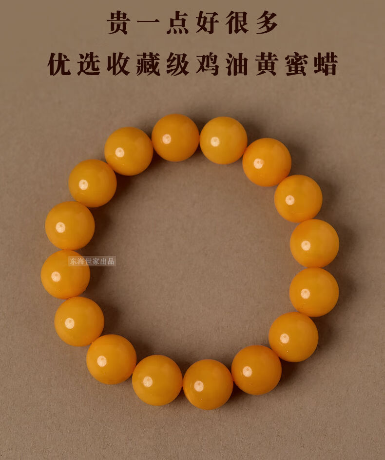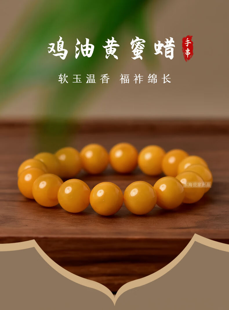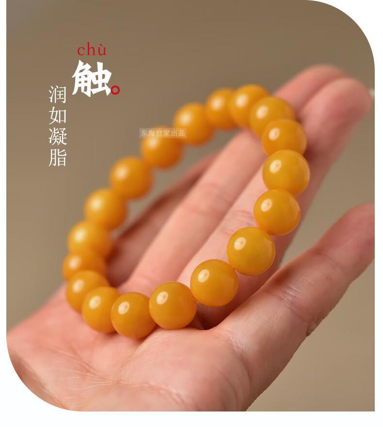 Time Bird Beeswax Bracelet for Men and Women Yellow Crystal Agate Jade Single Bead Scattered Beads Amber Raw Stone Chicken Fat Yellow Beeswax Bracelet Collection Grade Chicken Fat Yellow About 12mm