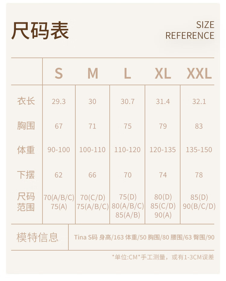 China (cm) 160-165/84-86 165-170 / 88-90 167-172 / 92-96 168-173 / 98-102 170-176 / 106-110