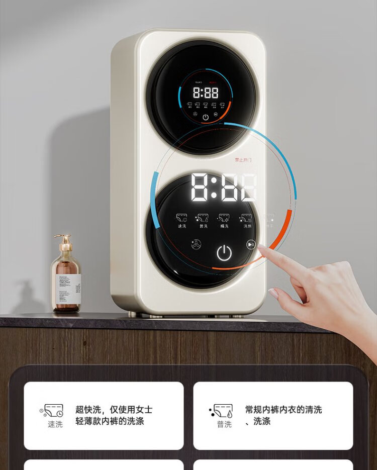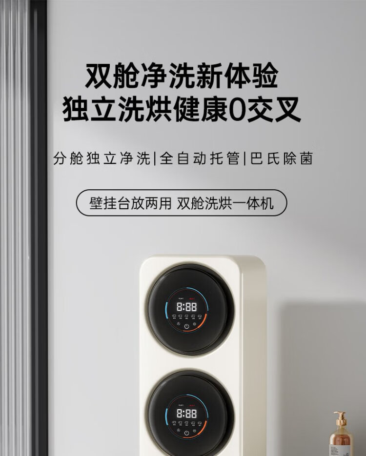 KANGYAN wall-mounted double-bucket compartment separate underwear washing machine mini small fully automatic washing and drying all-in-one sock washing machine lazy washing machine sock washing artifact titanium gray double-bucket space capsule desktop wall-mounted dual-use model washing and drying all-in-one