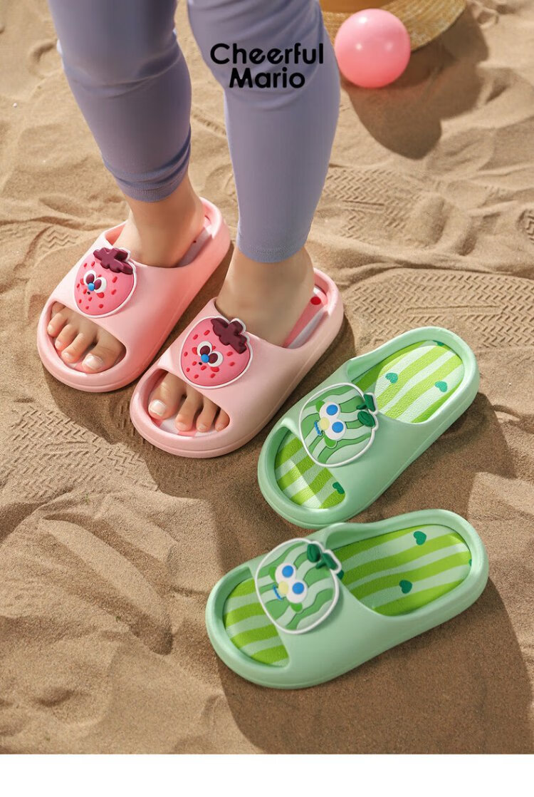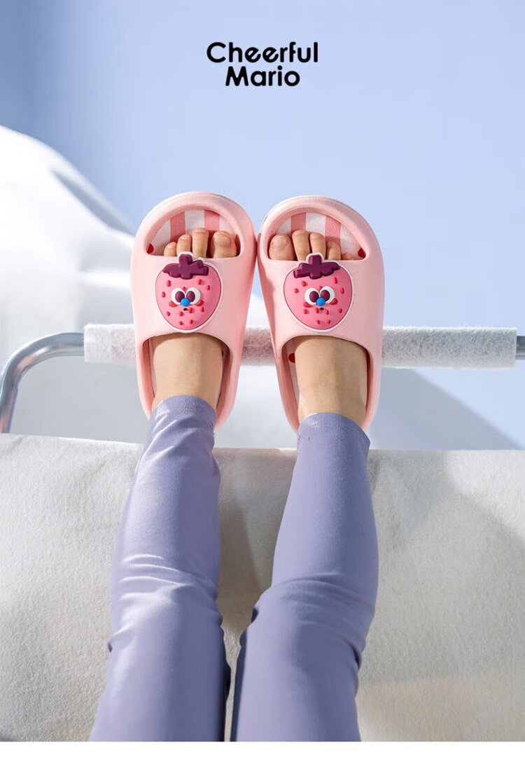 Happy Mary parent-child children's slippers summer boys and girls indoor home bathroom cute soft-soled cartoon slippers for a family of three pink (pink strawberry) 17 inner length 17.0cm (suitable for feet 16cm long)