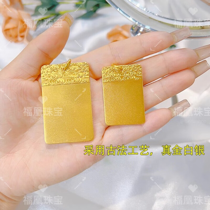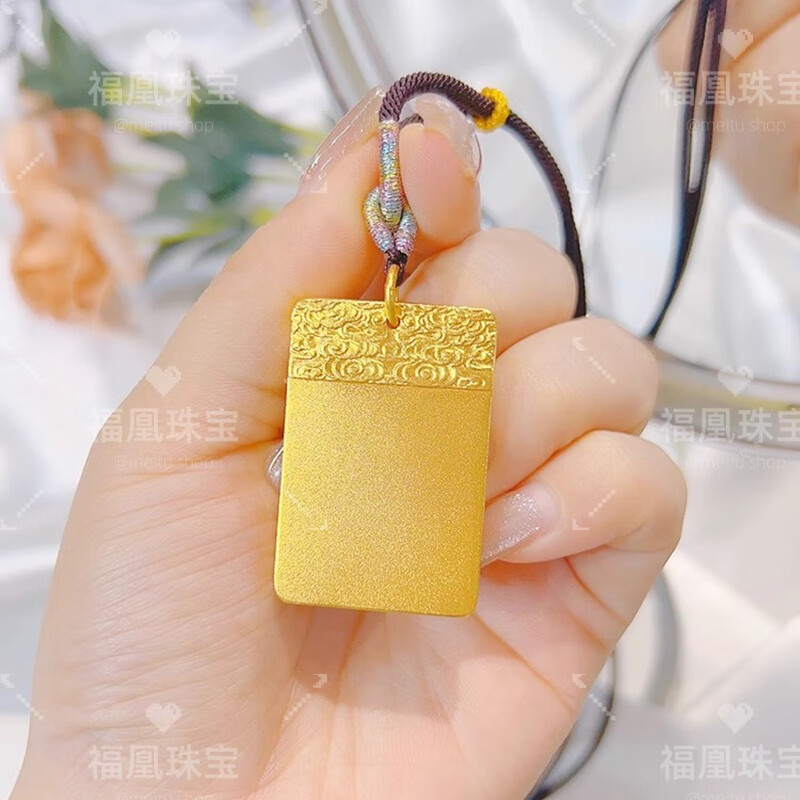 Fuhuang Jewelry's ancient heritage Ping An Wu Shi brand pendant 999 solid gold-plated silver solid versatile pendant for men and women for holiday gifts Wu Shi Pendant Black Rope Gold-filled 1.3 grams total weight about 30 grams - ready stock for quick delivery