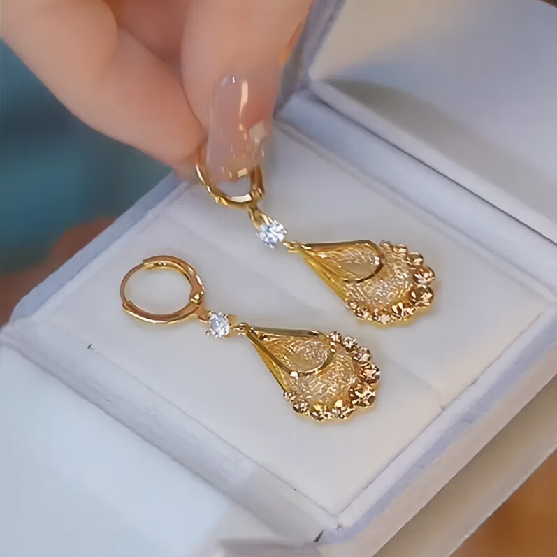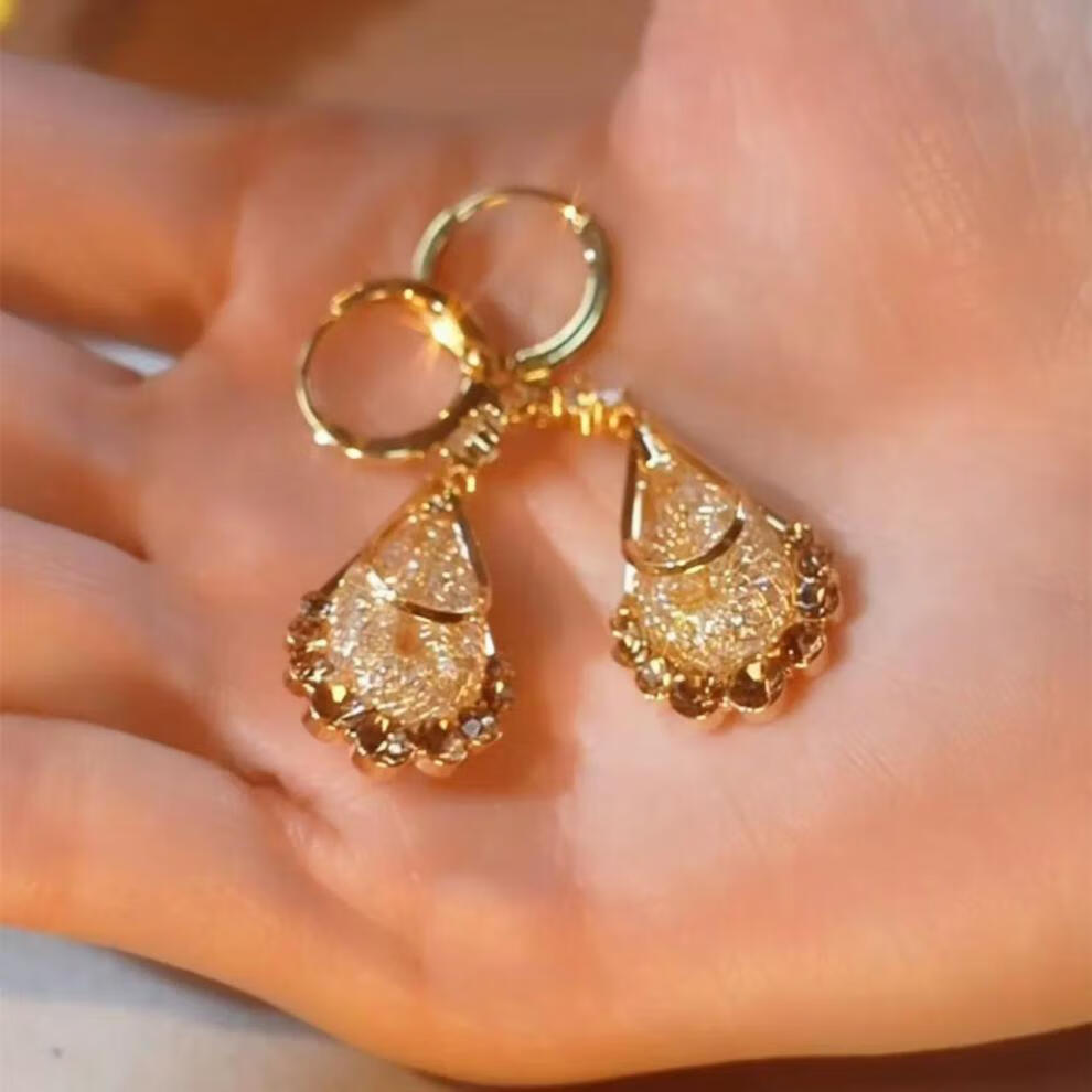 Dragon Girl Gold Mesh Brown Crystal Water Drop Earrings for Women Light Luxury Fashionable Earrings Temperament Earrings Purple A04-302 Copper Earrings