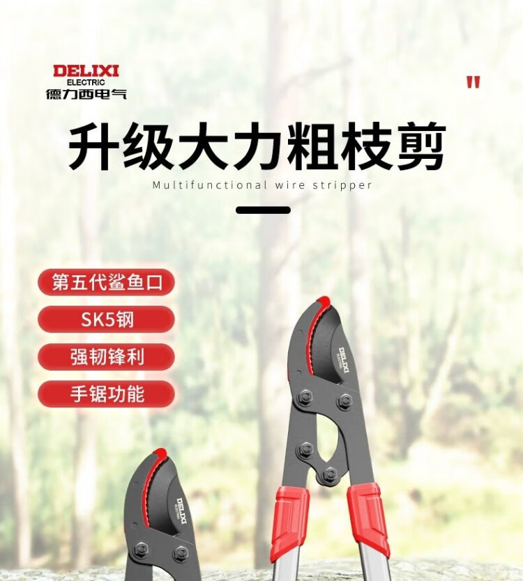 Delixi scissors, pruning shears, special thick branch shears for pruning branches, strong branch pruning shears, large scissors, extended version - thickened rod shark teeth - 1 free blade
