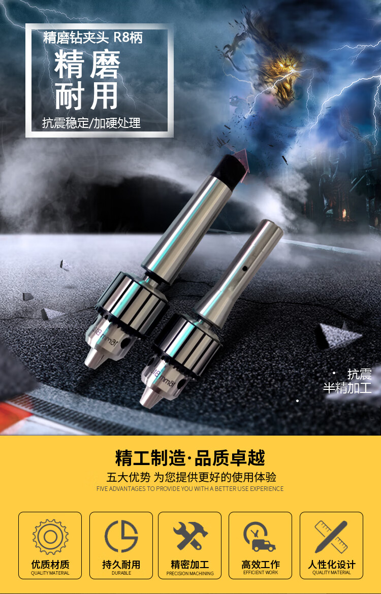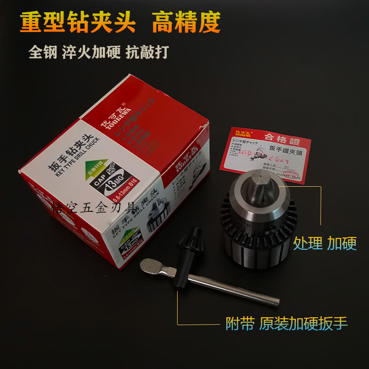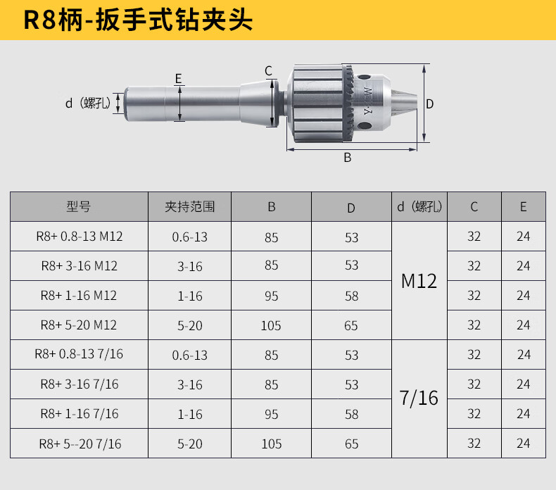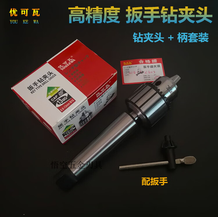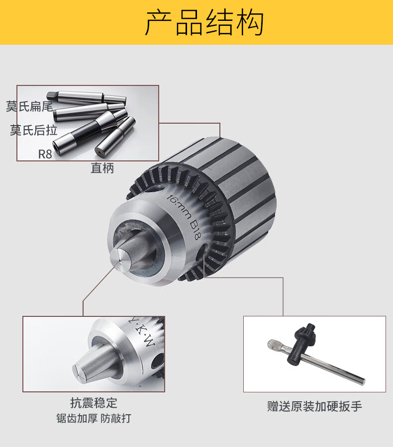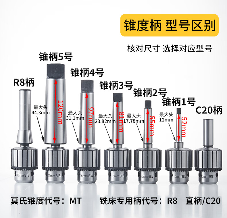YHGFEE heavy duty drill chuck bench drill chuck lathe high precision wrench drill chuck R8 shank Morse taper shank straight shank milling machine chuck gray 1-10 mm B12