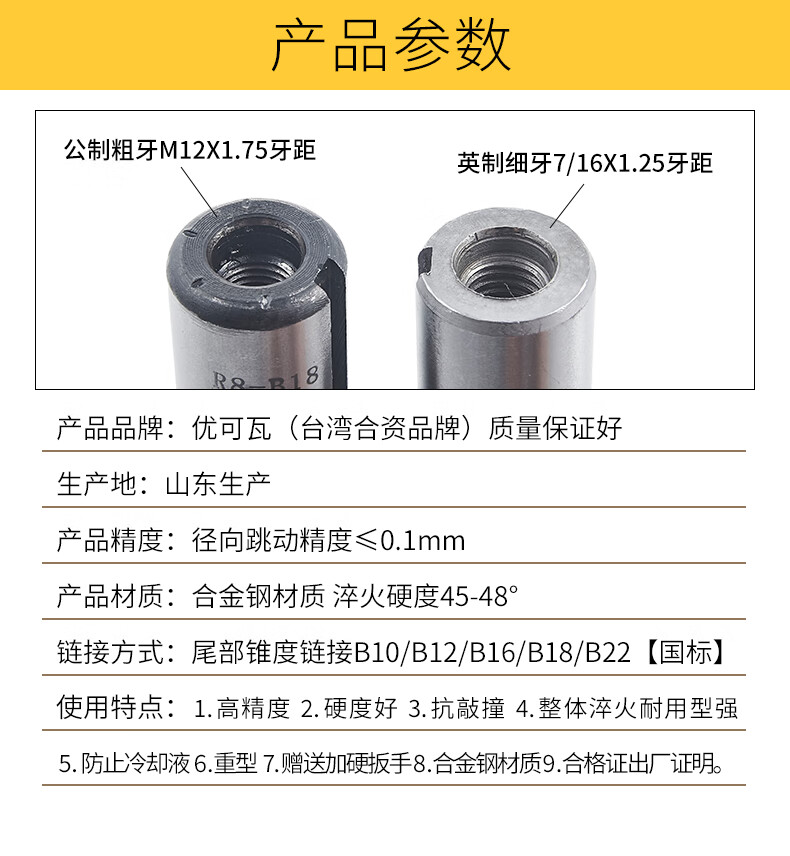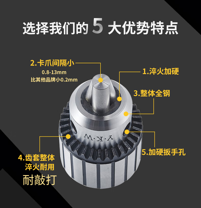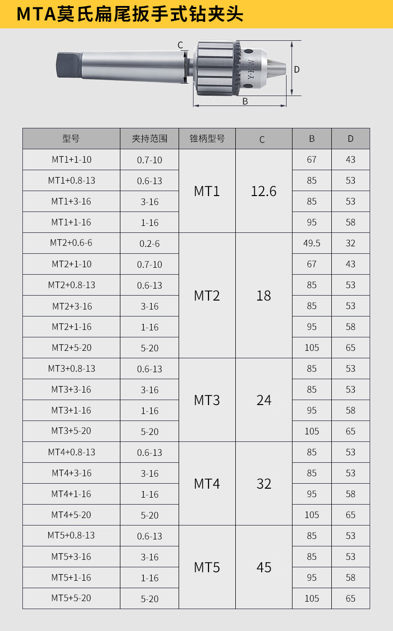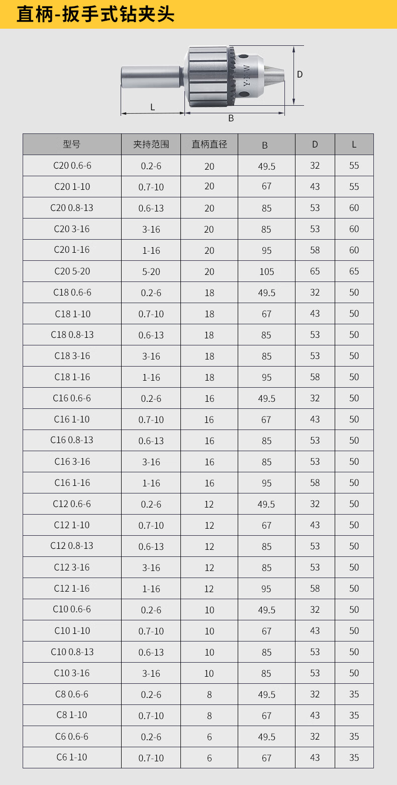 YHGFEE heavy duty drill chuck bench drill chuck lathe high precision wrench drill chuck R8 shank Morse taper shank straight shank milling machine chuck gray 1-10 mm B12