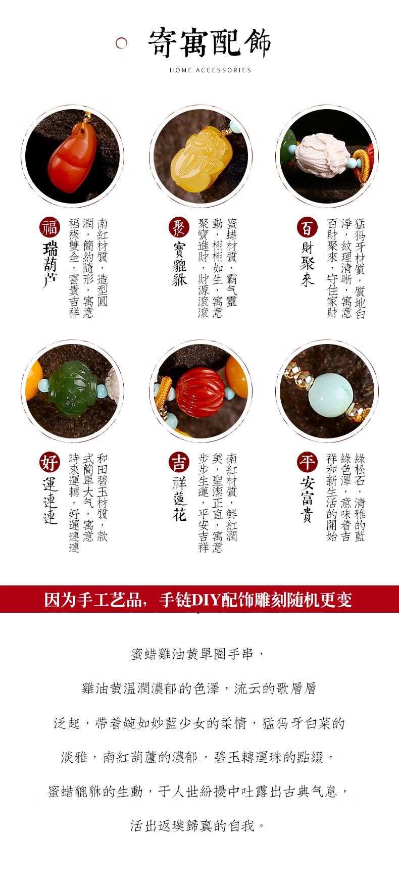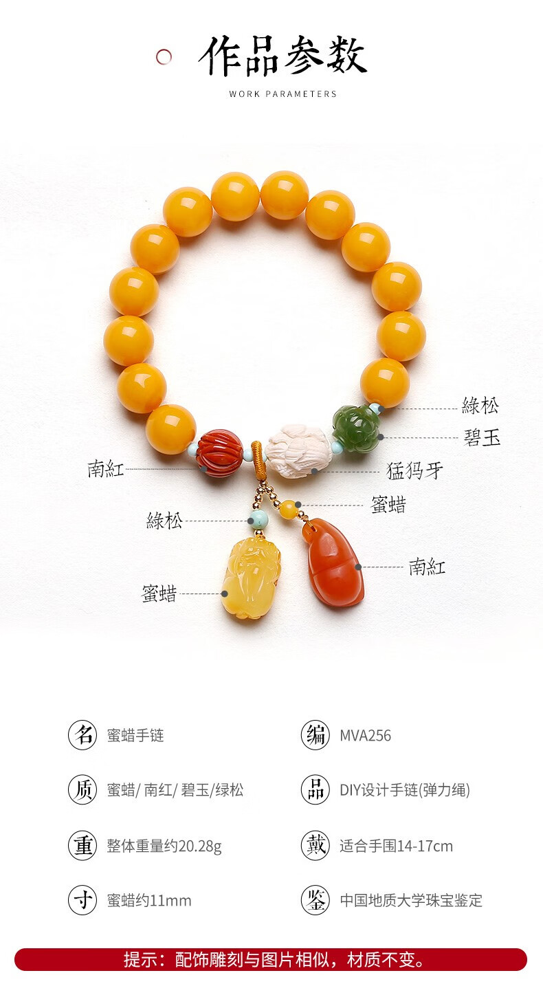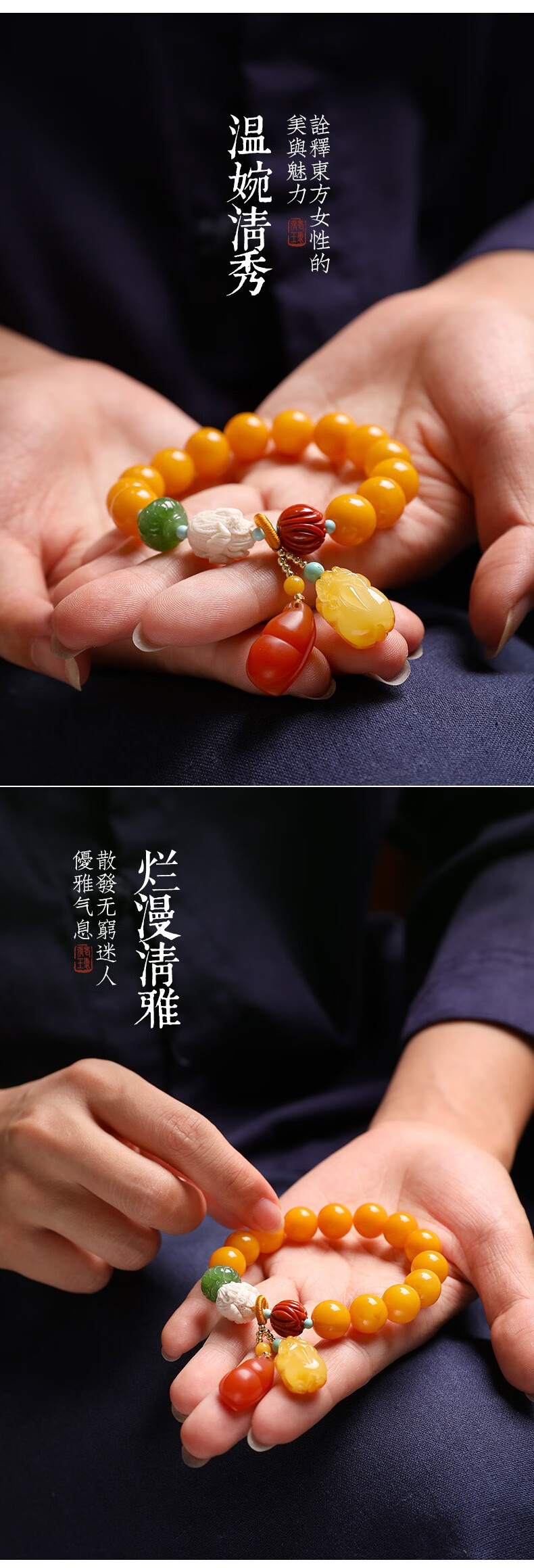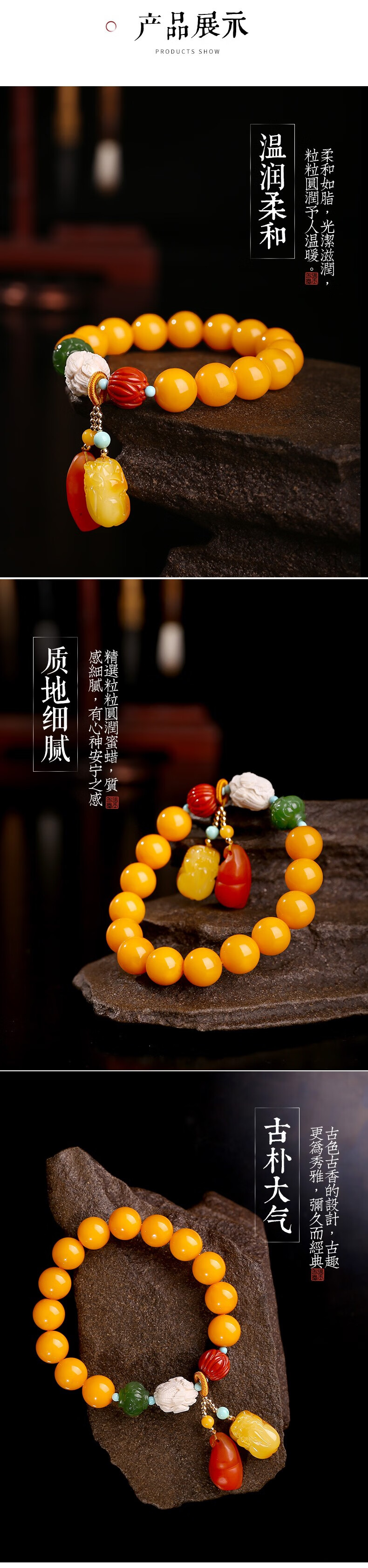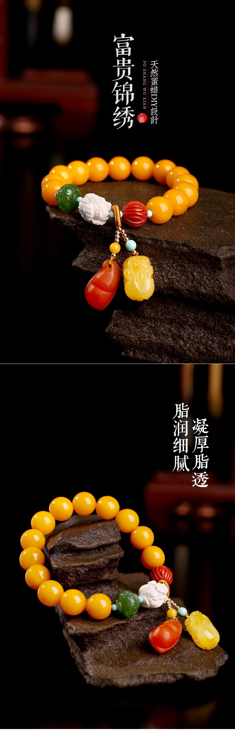 JIYAO Xiangzhenfu natural beeswax bracelet female chicken oil yellow single circle DIY bracelet amber small Pixiu beads 11mm yellow honey beads about 11mm