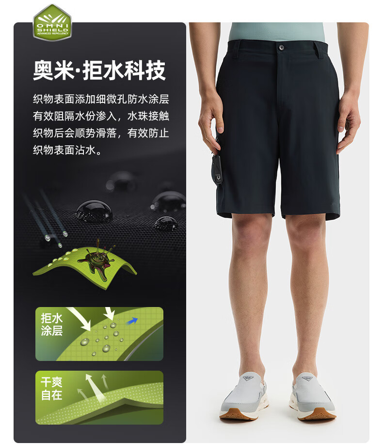 Columbia outdoor men's fishing series water-repellent dry casual travel camping sports shorts FM2359 011 28 (165/66A)