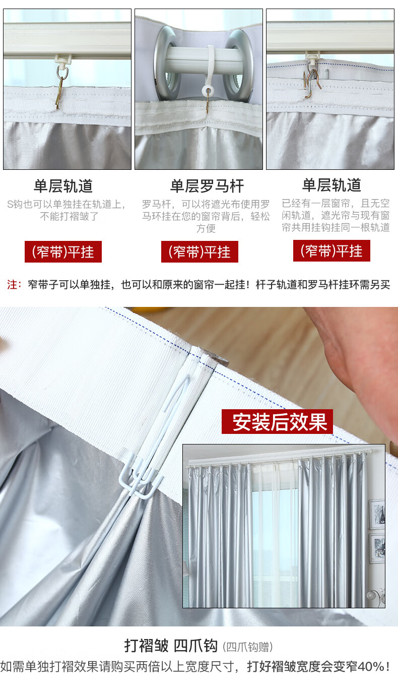 Sun protection cloth, thickened full blackout cloth, customized blackout curtains, finished fabric, sun protection and heat insulation for bedroom and living room, balcony cover, width 1.0 meters * height 1.4 meters, encrypted full blackout double-sided silver (flat hanging narrow strip