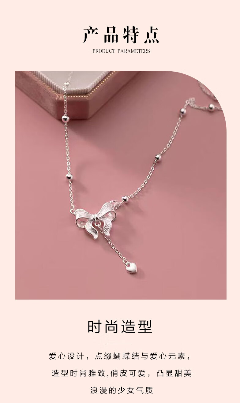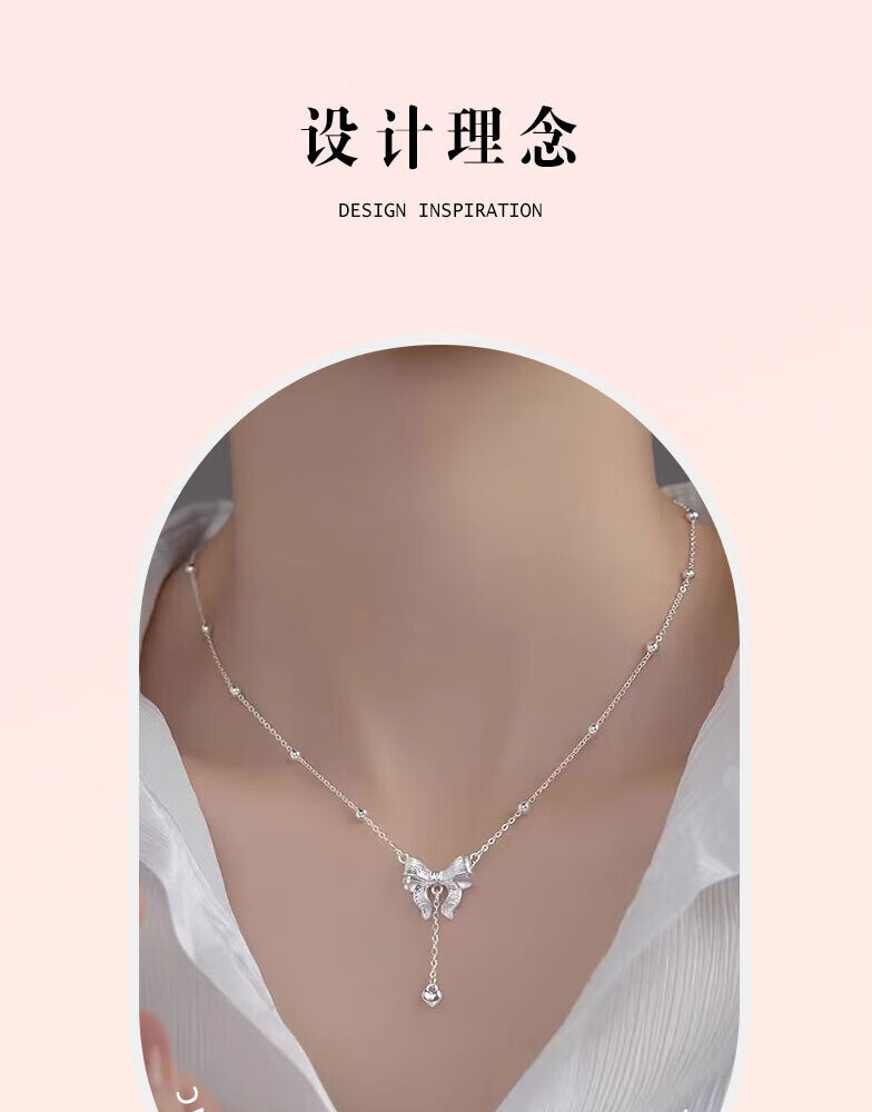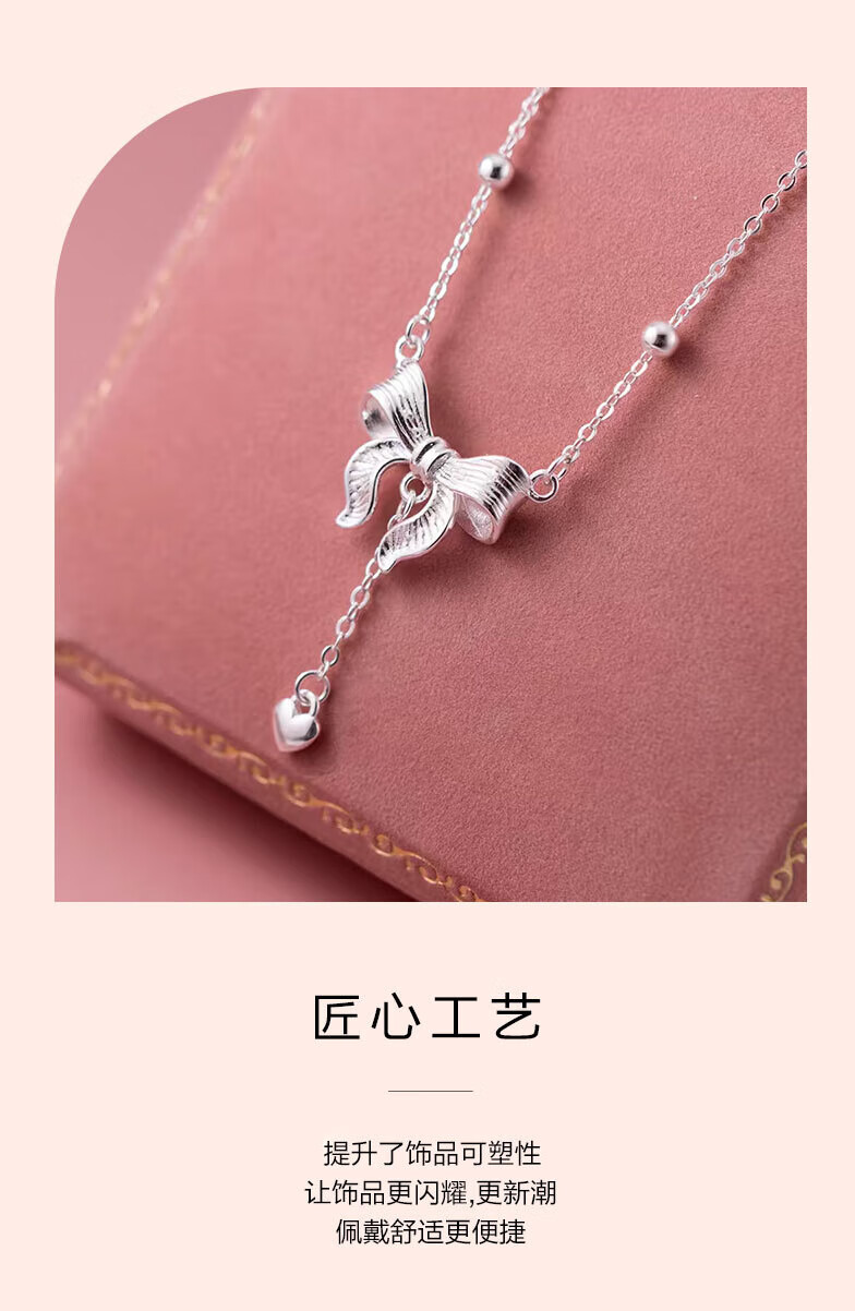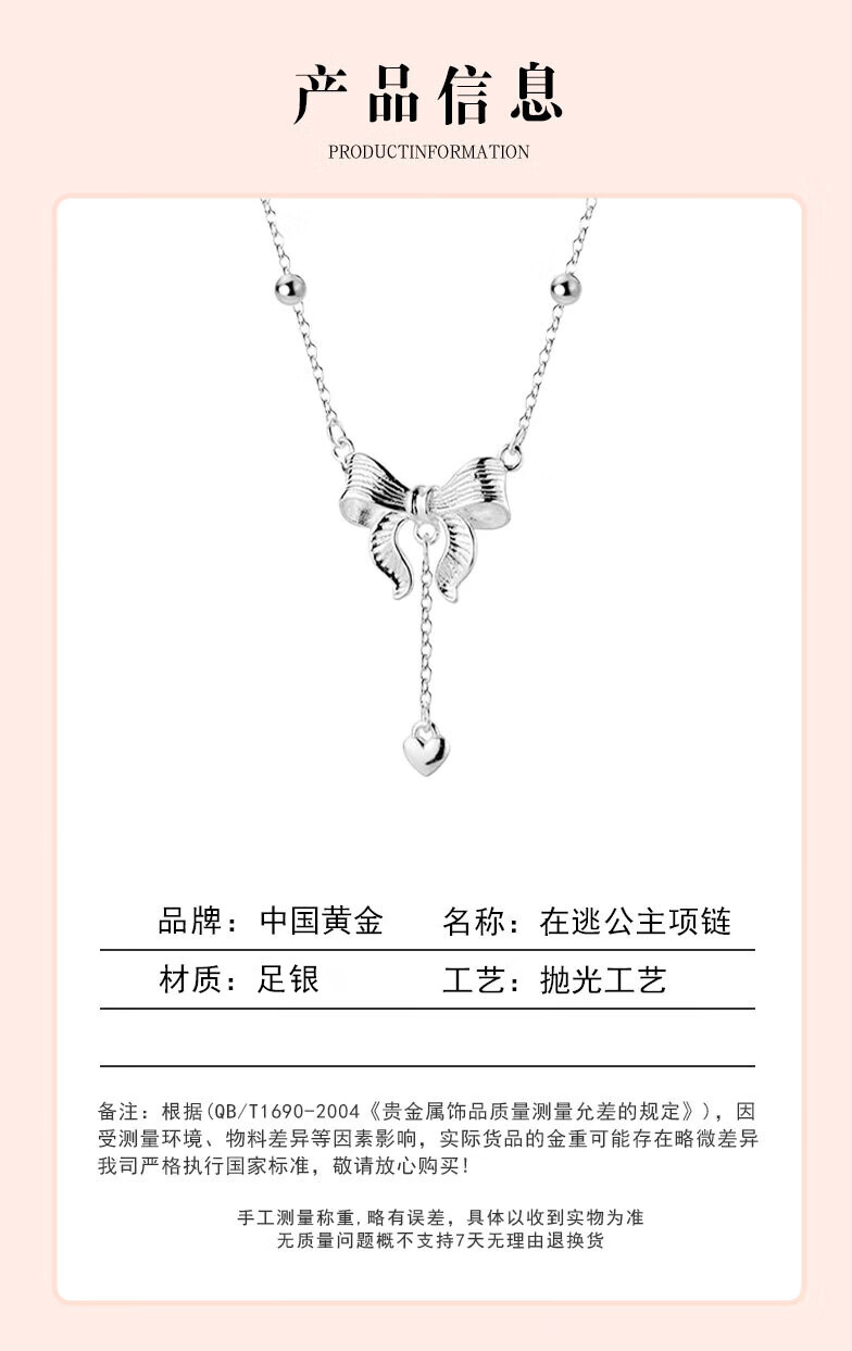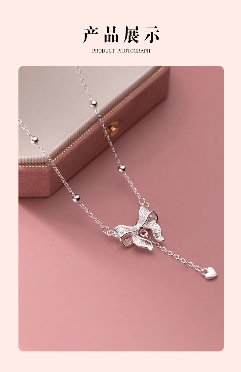 CHINA GOLD pure silver fugitive princess necklace women's three-dimensional bow love pendant Valentine's Day birthday gift for girlfriend, today/next day delivery bow love necklace