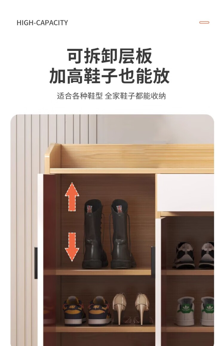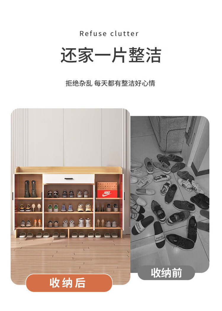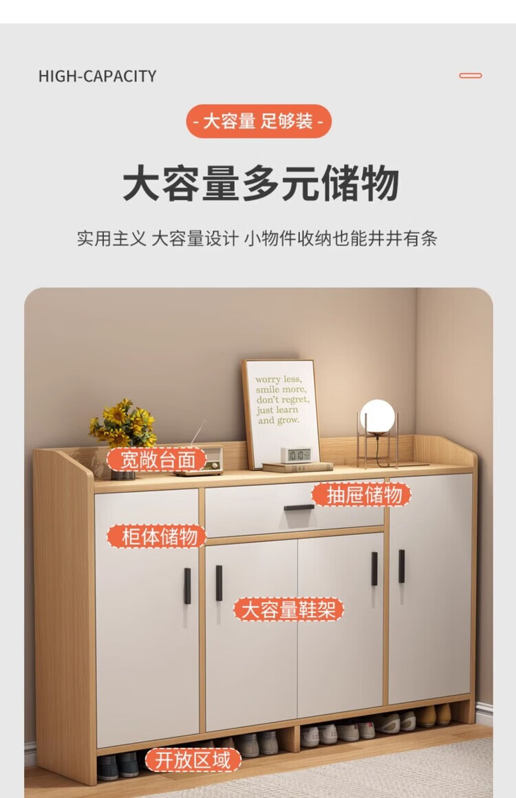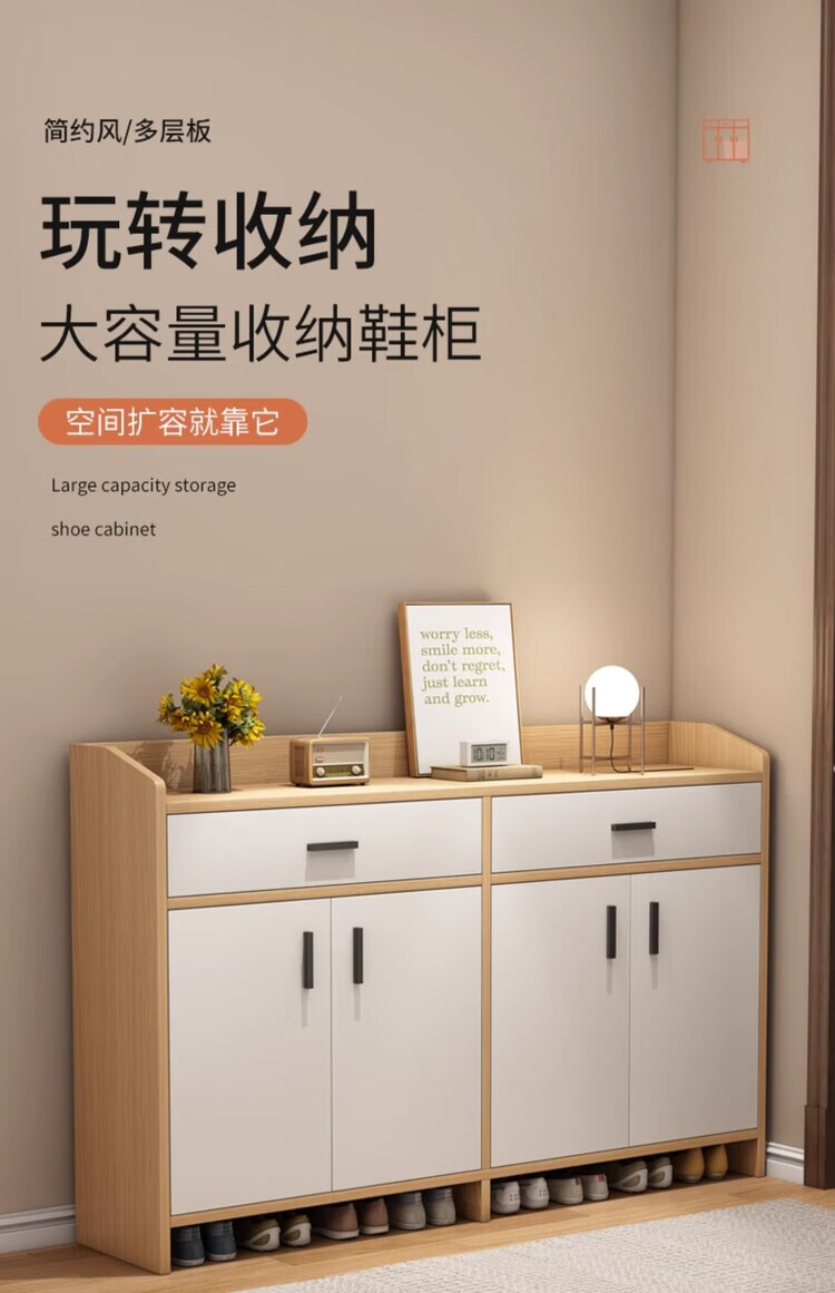 BENMUZIZAI Italian-style light luxury solid wood shoe cabinet home entrance indoor new 2025 hot model entry entrance cabinet integrated shoe shelf ordinary fiberboard 60cm two doors and one pump pastoral oak