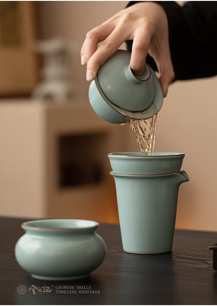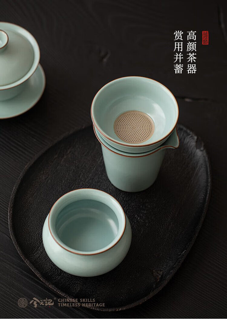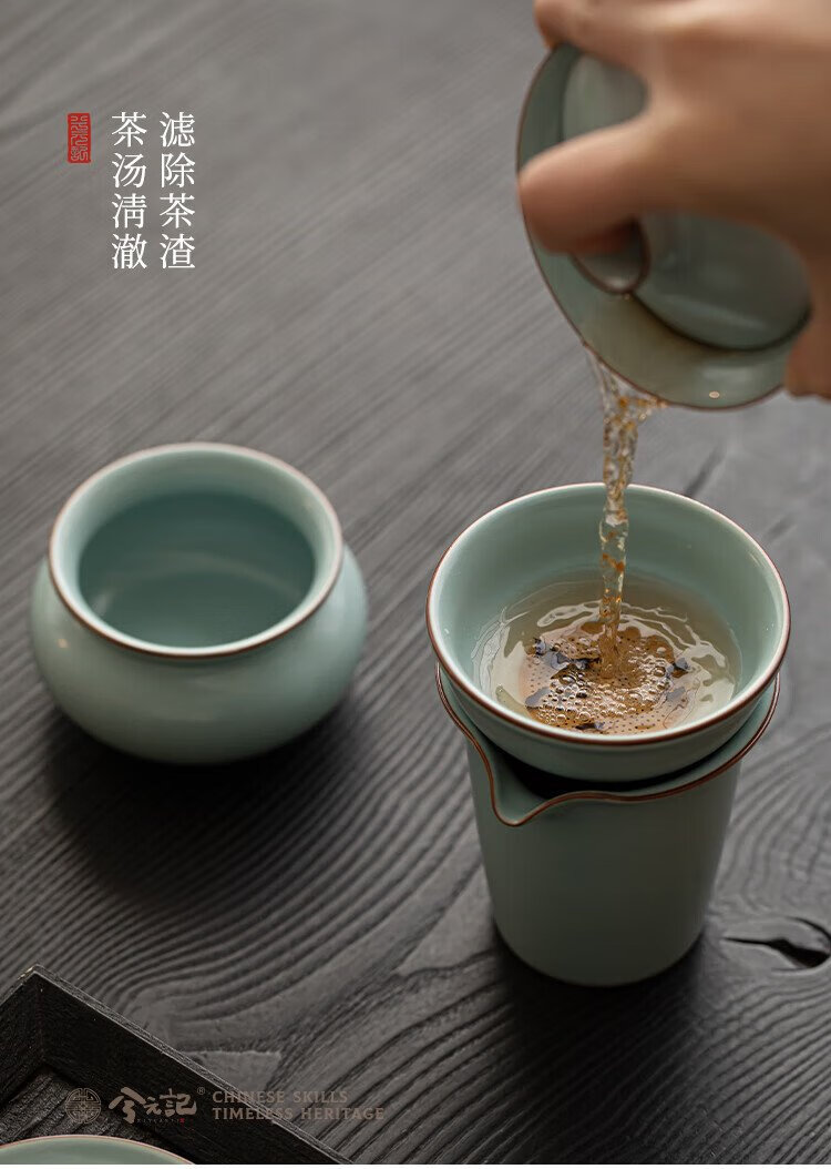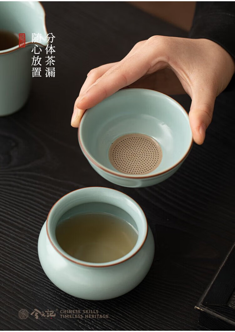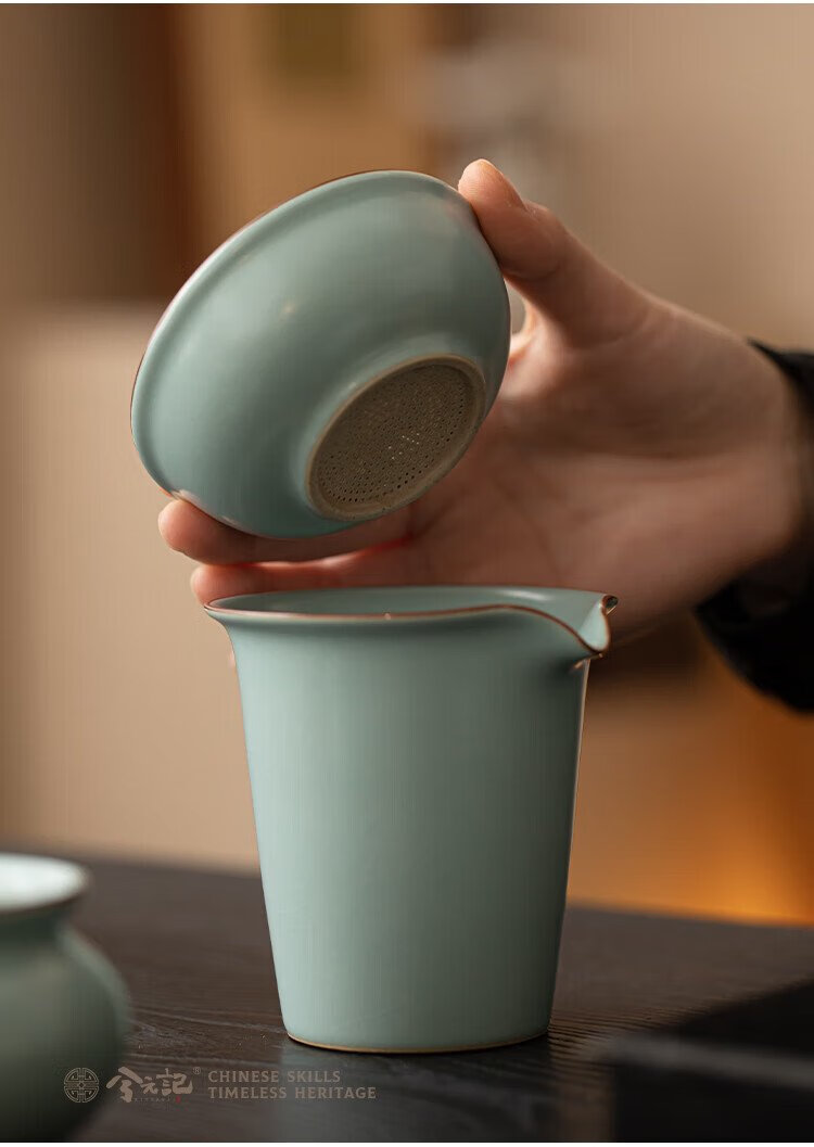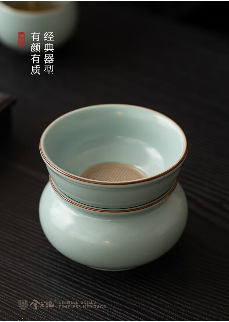 Xiyuanji Tianqing Ru Kiln Yuanbao Tea Strainer Set Ice Crack Tea Filter Tea Separator Tea Leaf Filter Tea Ceremony Accessories Tianqing Ru Kiln Yuanbao Tea Strainer Set