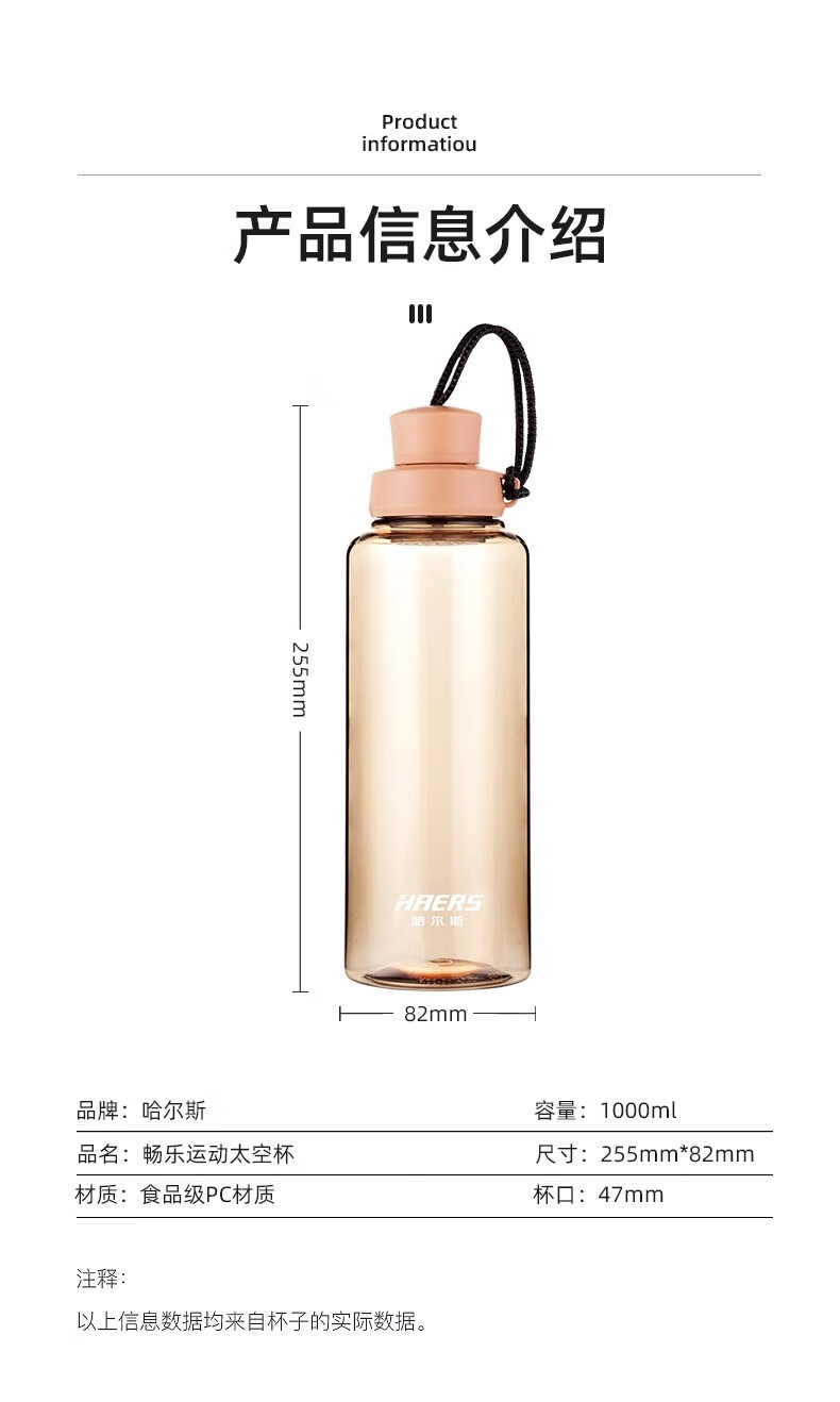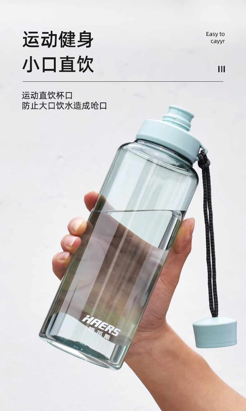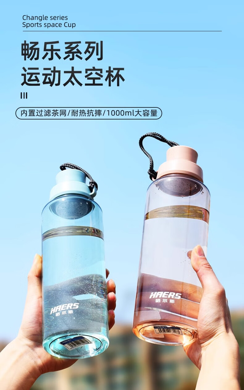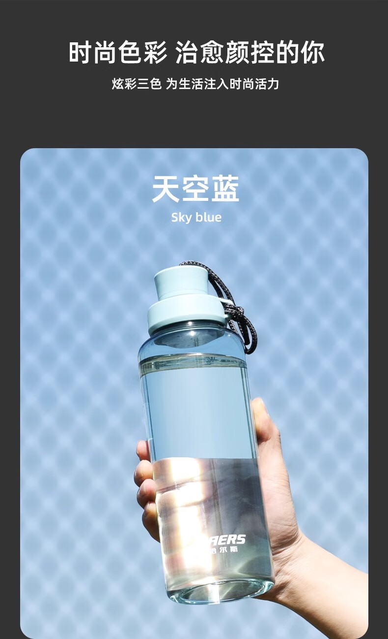 Hals Sports Water Cup for Men and Women Portable Summer Plastic Space Cup Large Capacity Fitness Water Bottle Bottle High Temperature Resistant Sky Blue 1000ml