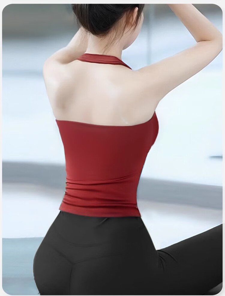 Shuangxiu Halter Neck Yoga Wear Women's New Style Stunning Red All-in-One Fixed Chest Pad Can Be Weared Outside Back Beautiful Pilates Training Wear Ankola Red Top XL (130-140)