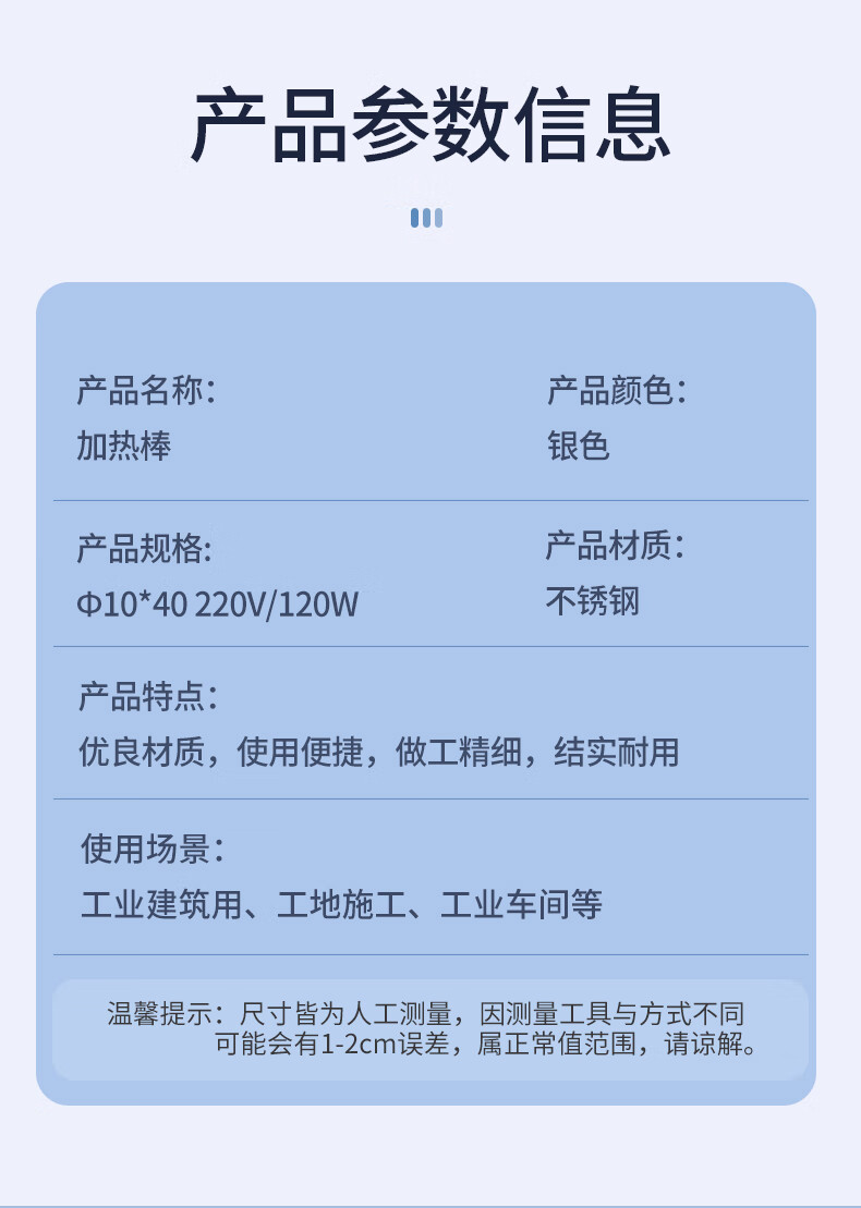 Jianzhun heating rod 10*40 220V/120W minimum order quantity 10 pieces