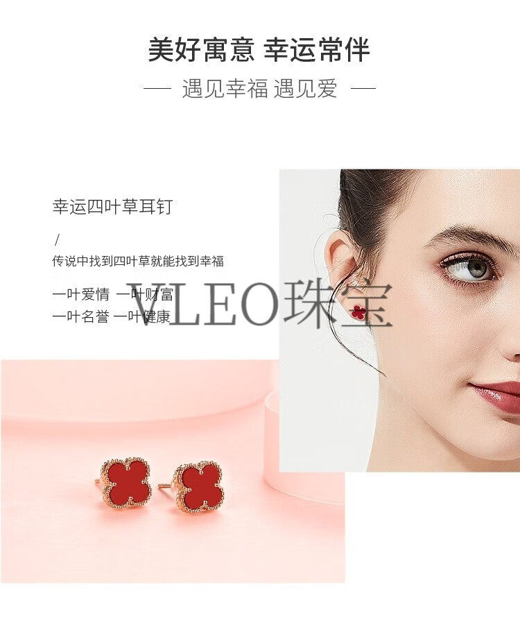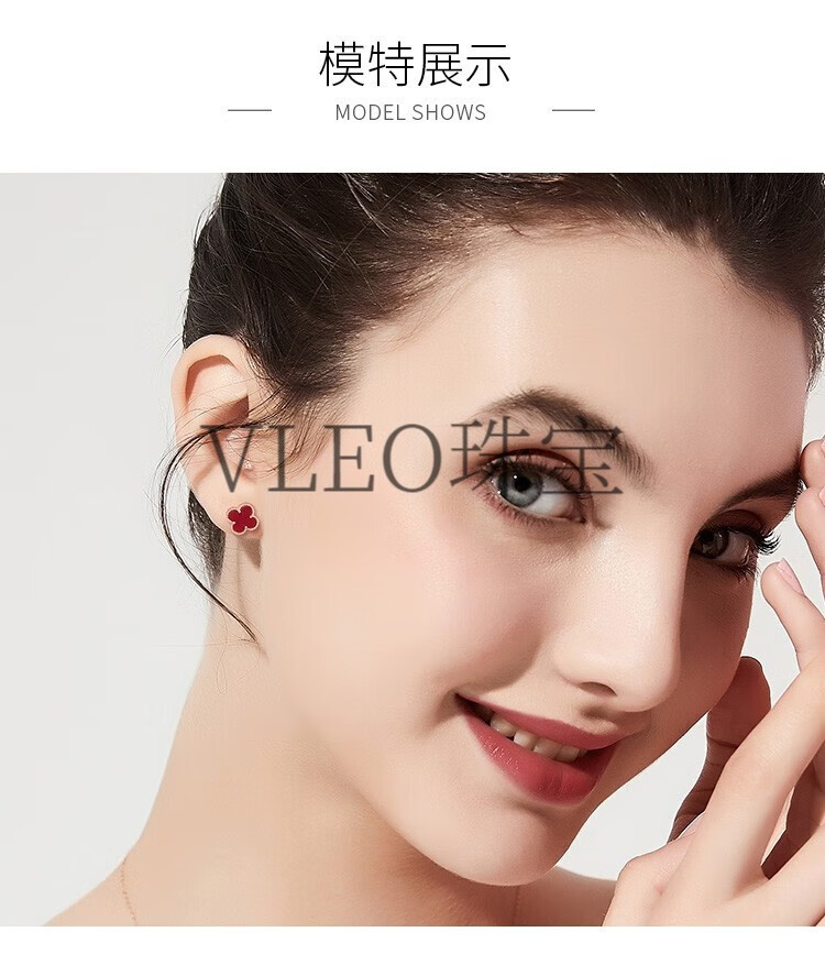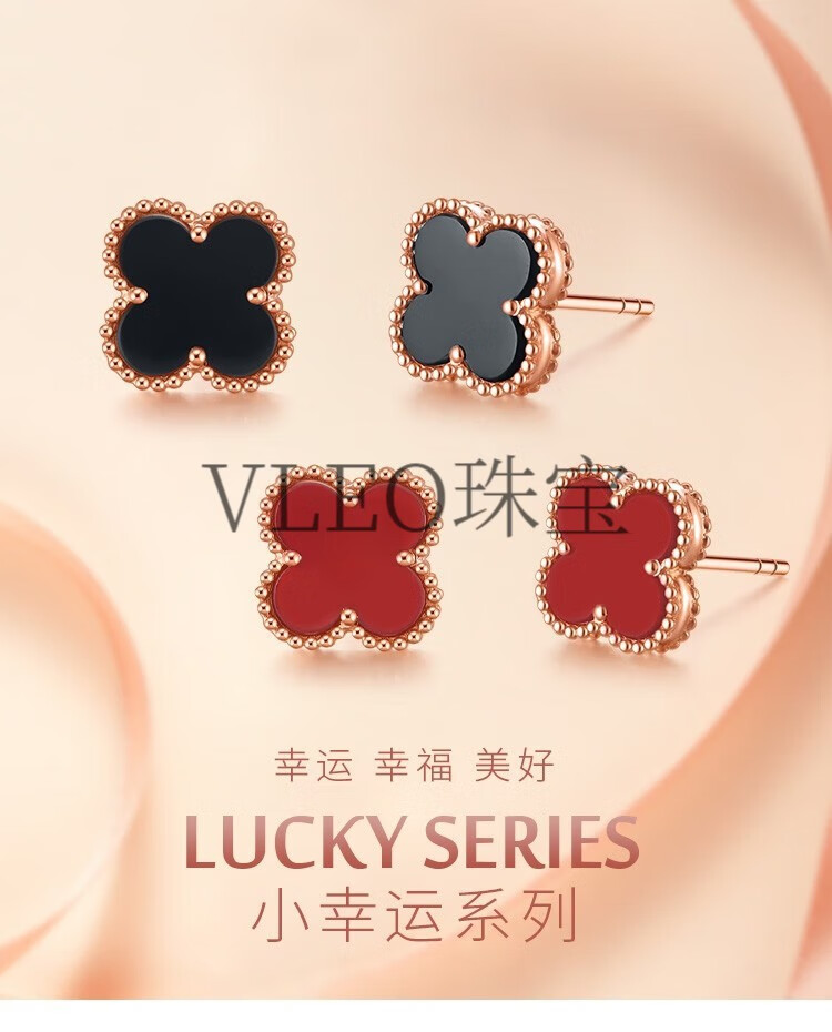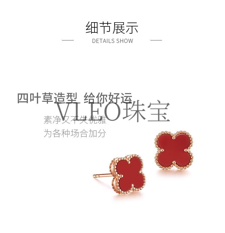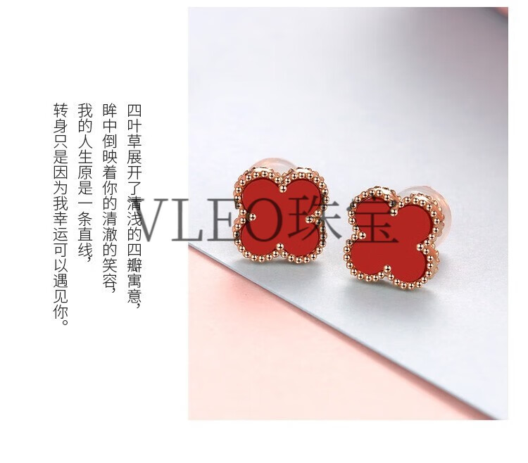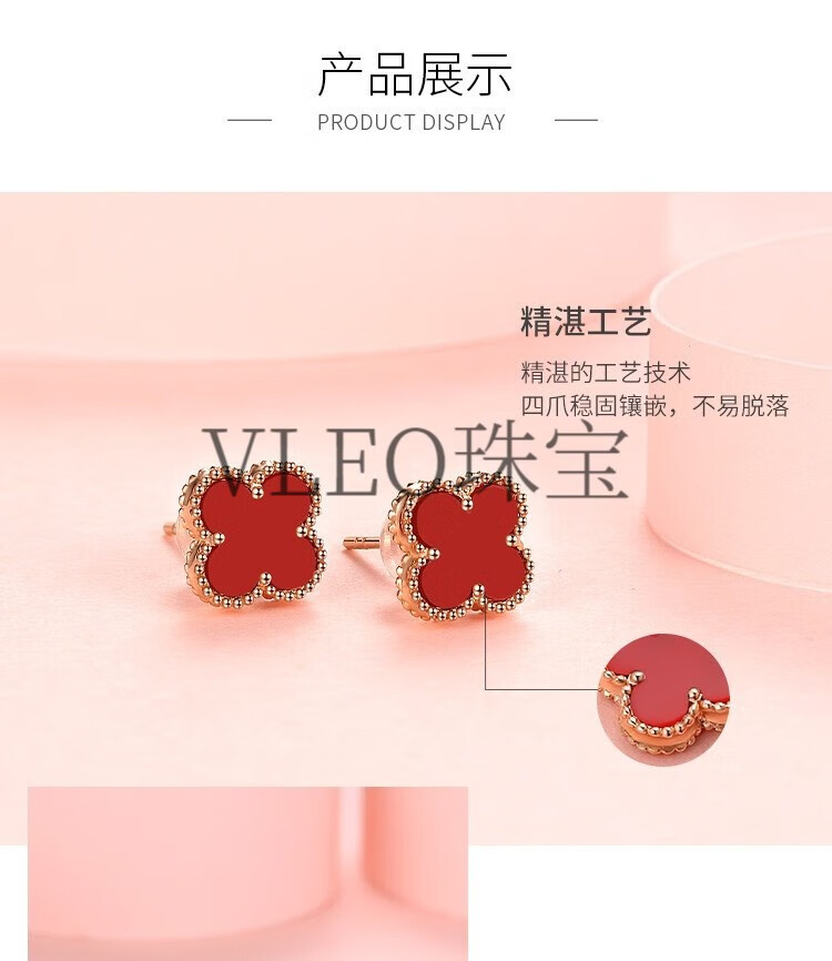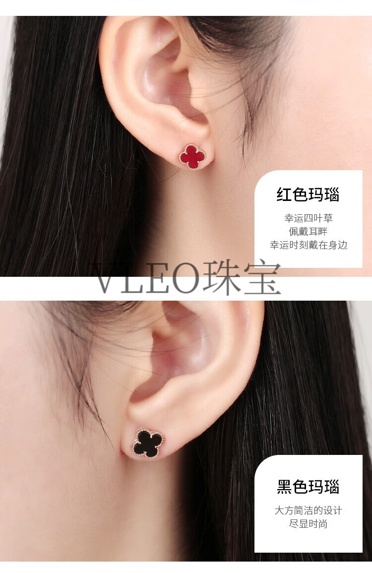 High-end four-leaf clover earrings for women 18k rose gold and red agate temperament silver earrings New Year's gift for girlfriend Small rose gold and red agate earrings + certificate + high-end gift box
