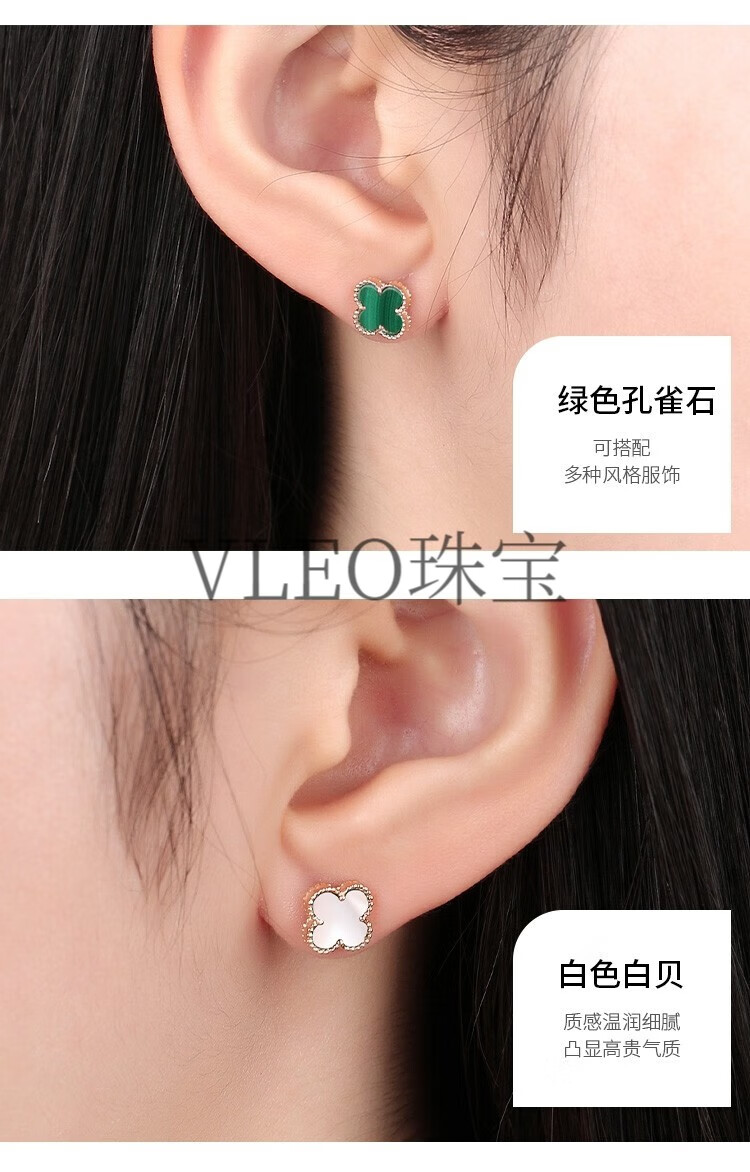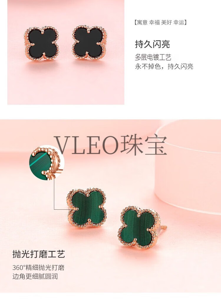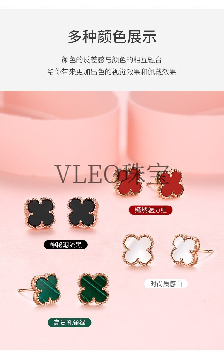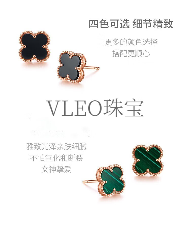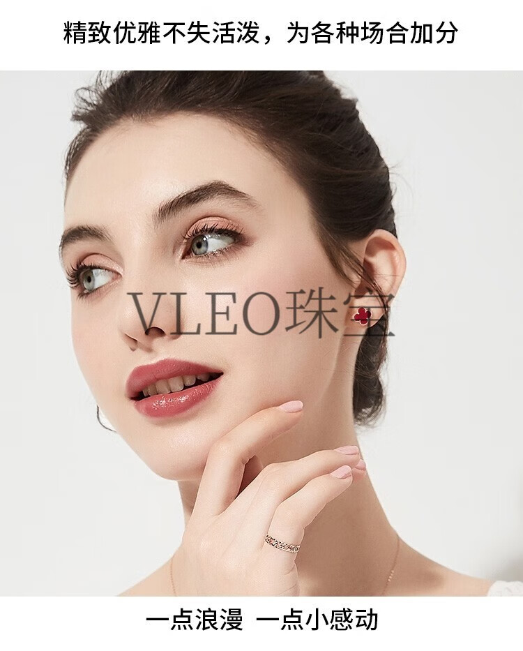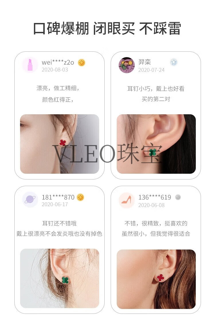 High-end four-leaf clover earrings for women 18k rose gold and red agate temperament silver earrings New Year's gift for girlfriend Small rose gold and red agate earrings + certificate + high-end gift box