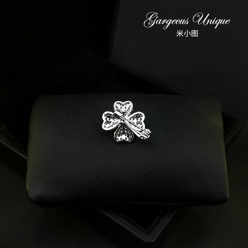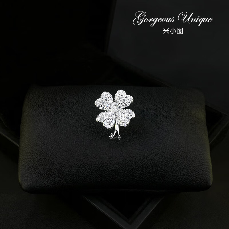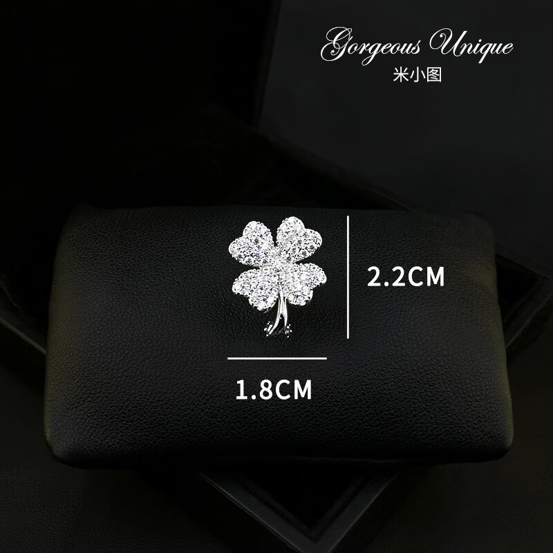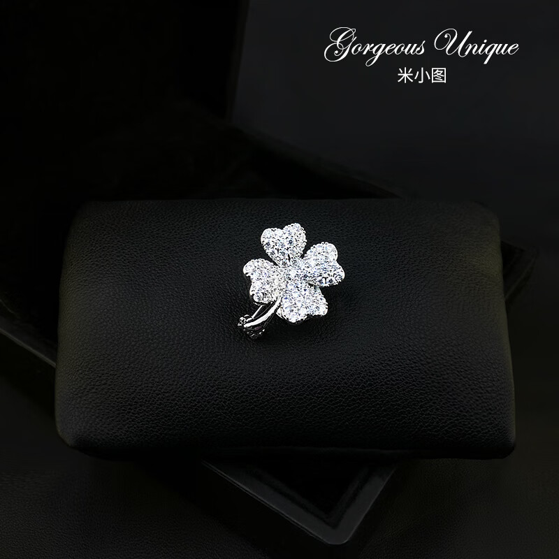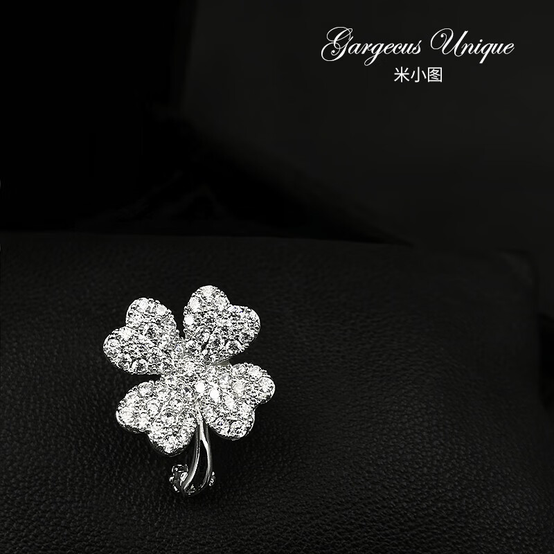 QUAMER zirconium exquisite four-leaf clover brooch men's and women's collar pin corsage clover pin suit sweater accessories bright silver