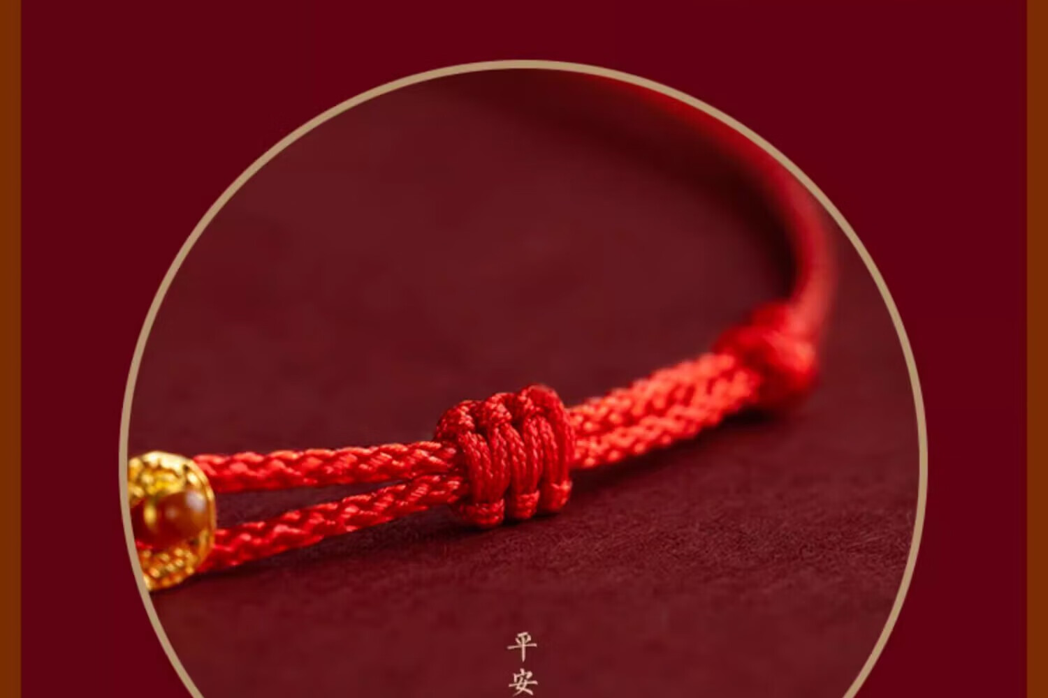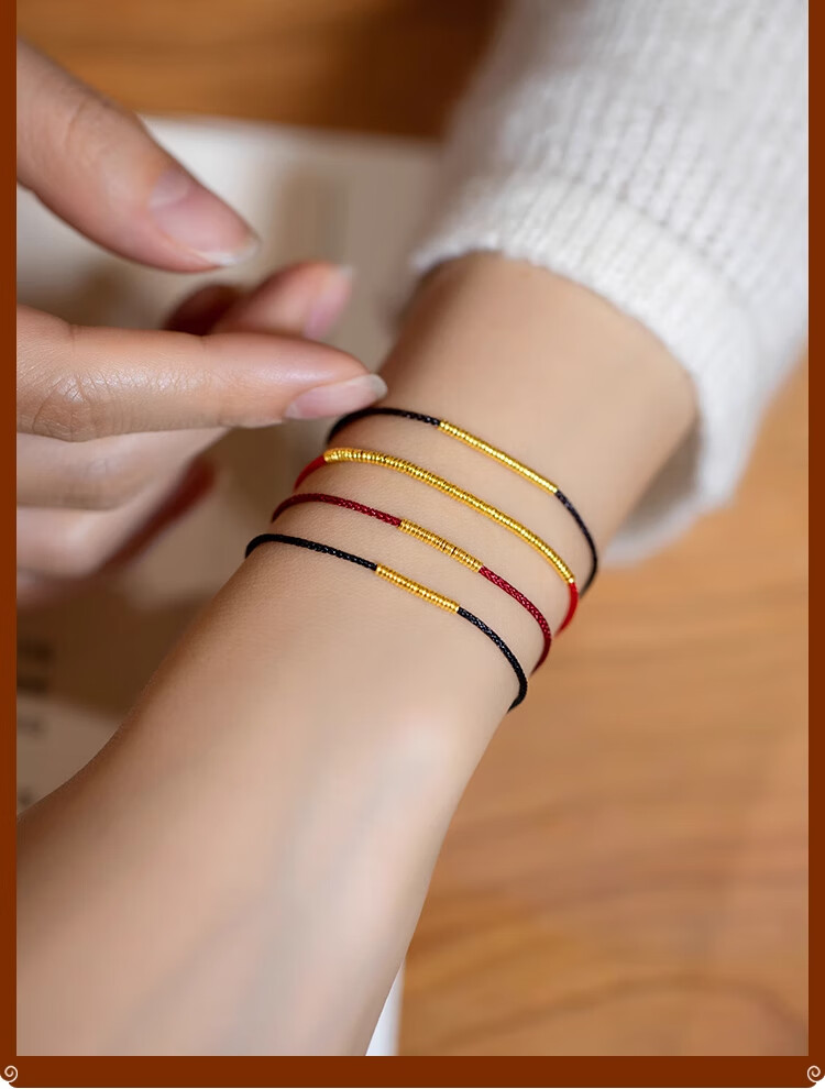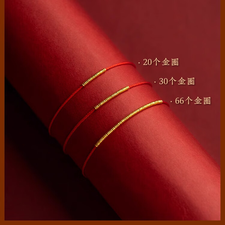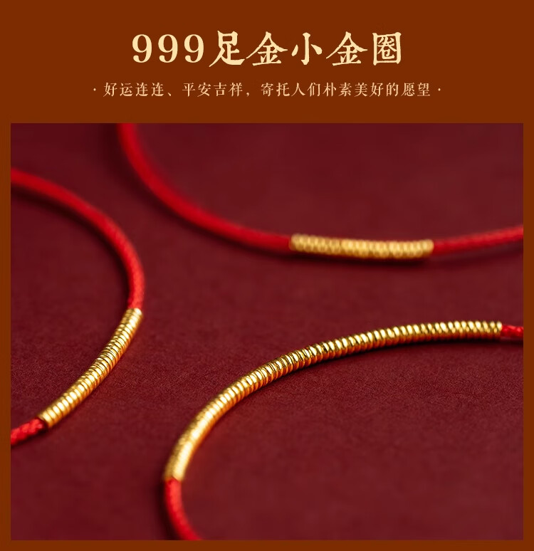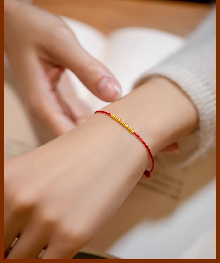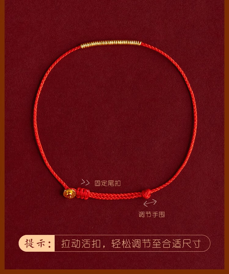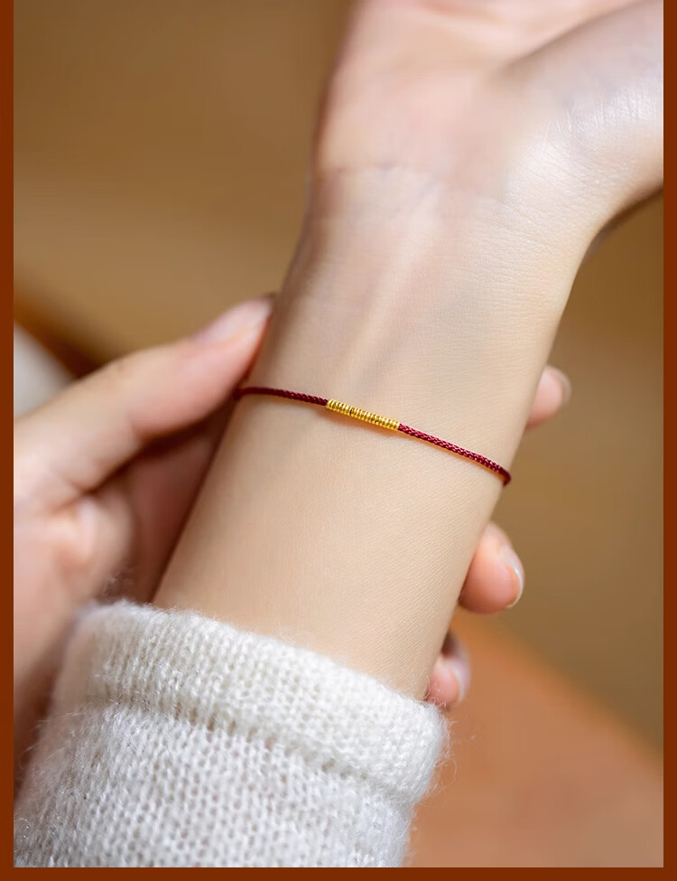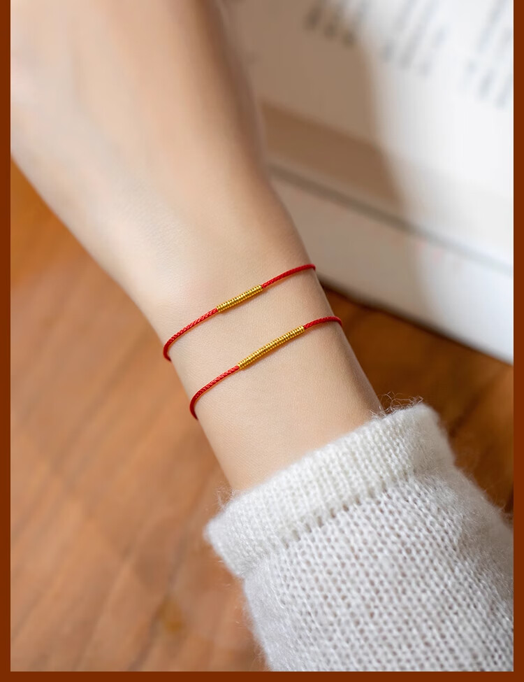 Putuo Mountain Straight Hair Golden Circle Little Red Rope Pure Gold 999 Lucky Star Same Bracelet for the Year of the Zodiac Master Blessing 20 Golden Circles - Ping An Red