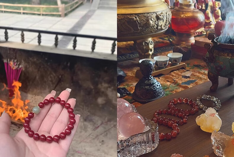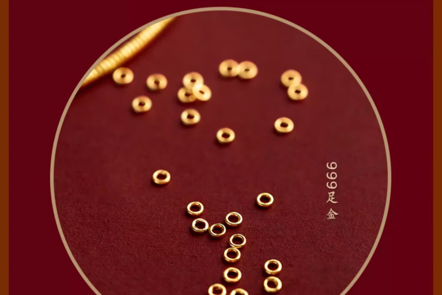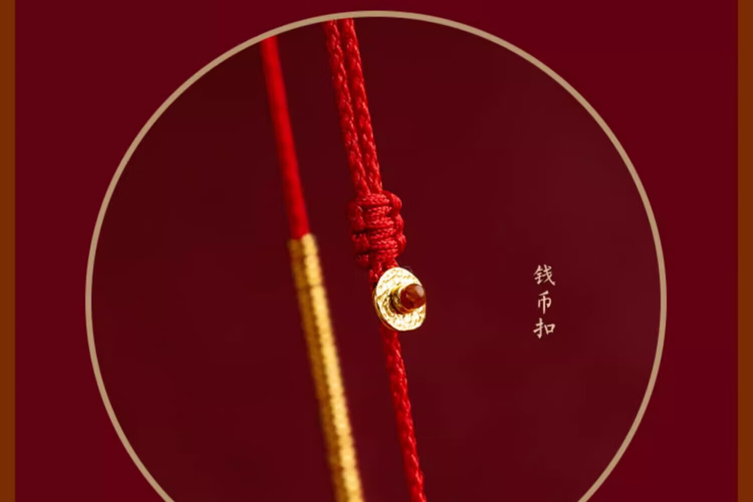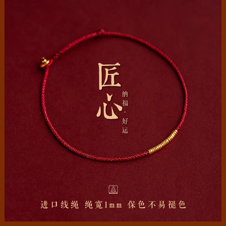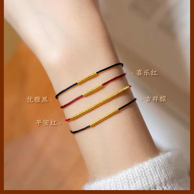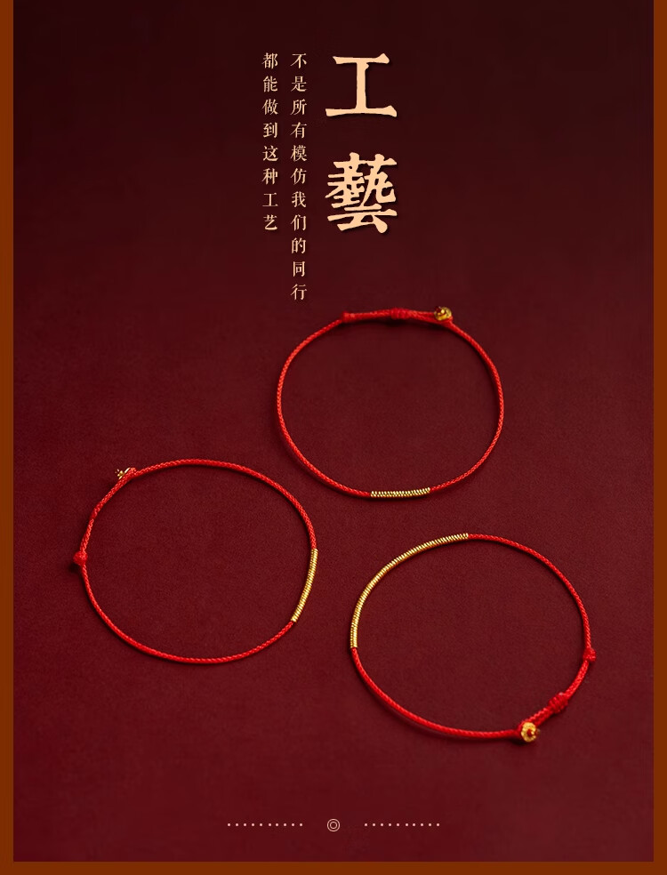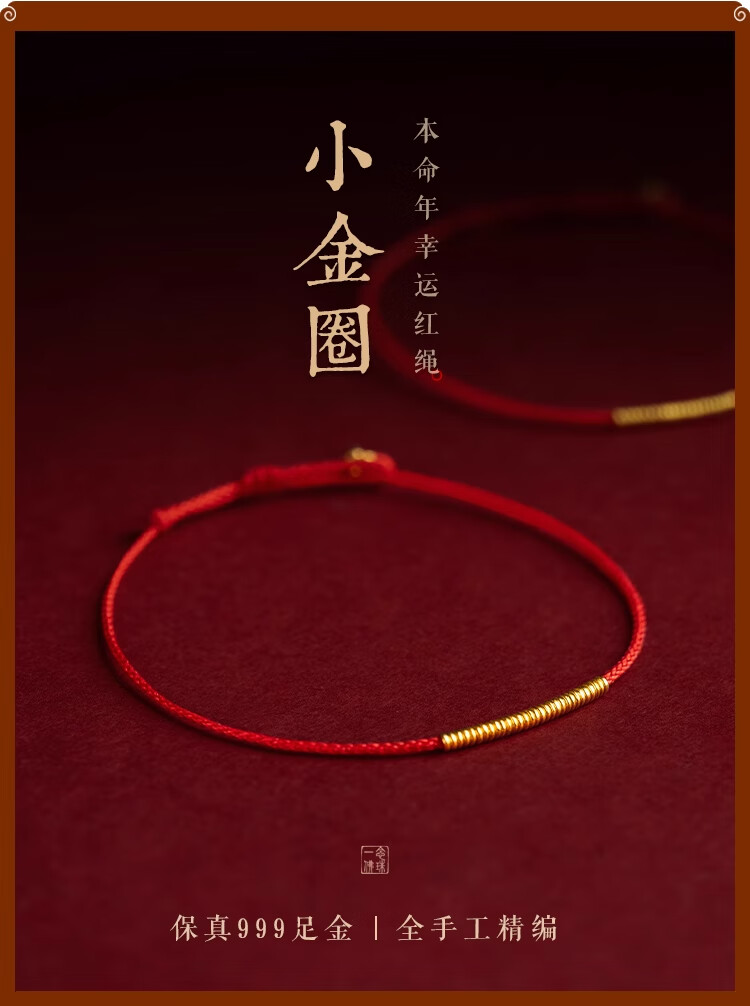 Putuo Mountain Straight Hair Golden Circle Little Red Rope Pure Gold 999 Lucky Star Same Bracelet for the Year of the Zodiac Master Blessing 20 Golden Circles - Ping An Red