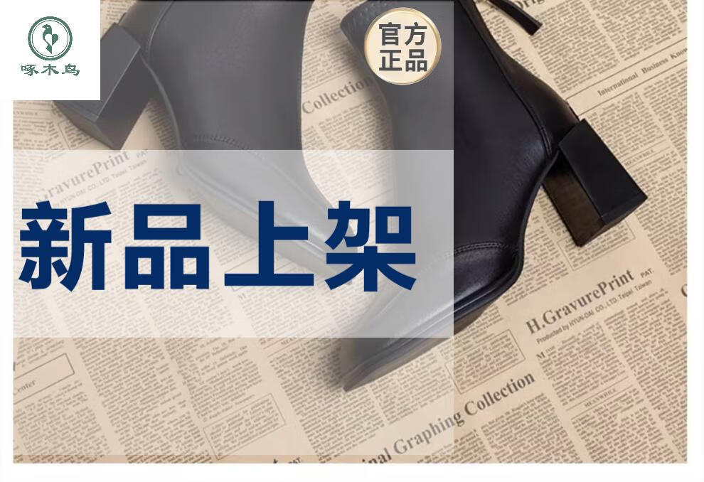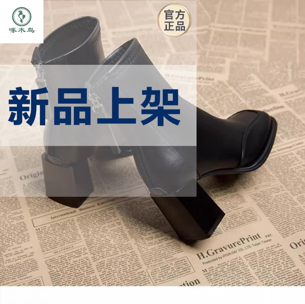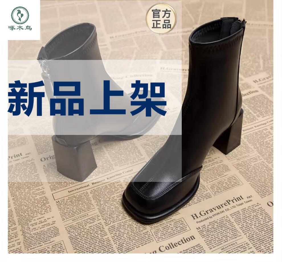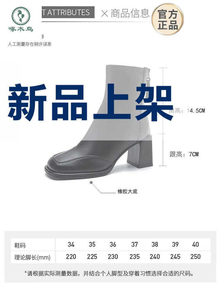 Woodpecker French ankle boots feel small short boots for women 2025 spring and autumn new style small square toe thick heel Martin boots high heel brown single lining upgraded version 40