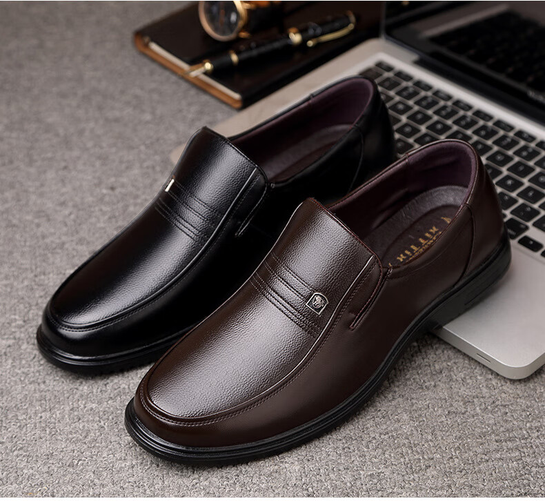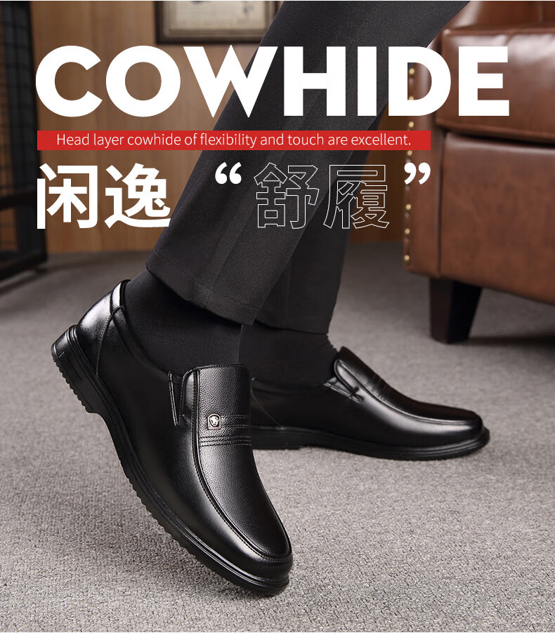 Woodpecker men's leather shoes business casual genuine leather non-slip soft sole soft surface middle-aged and elderly dad's shoes genuine leather breathable foot cover black single layer 42