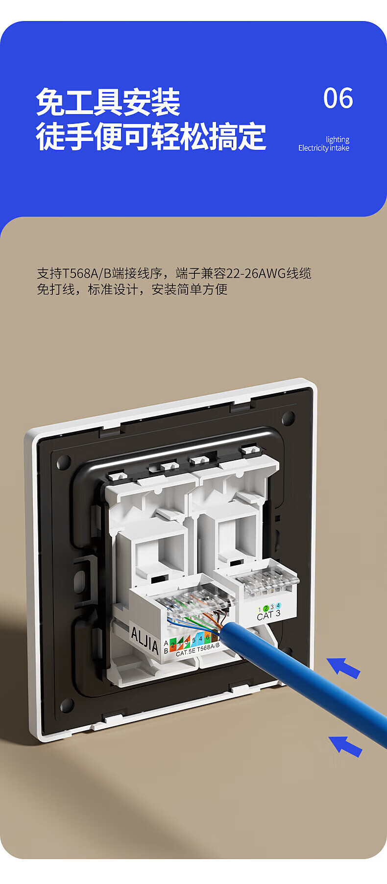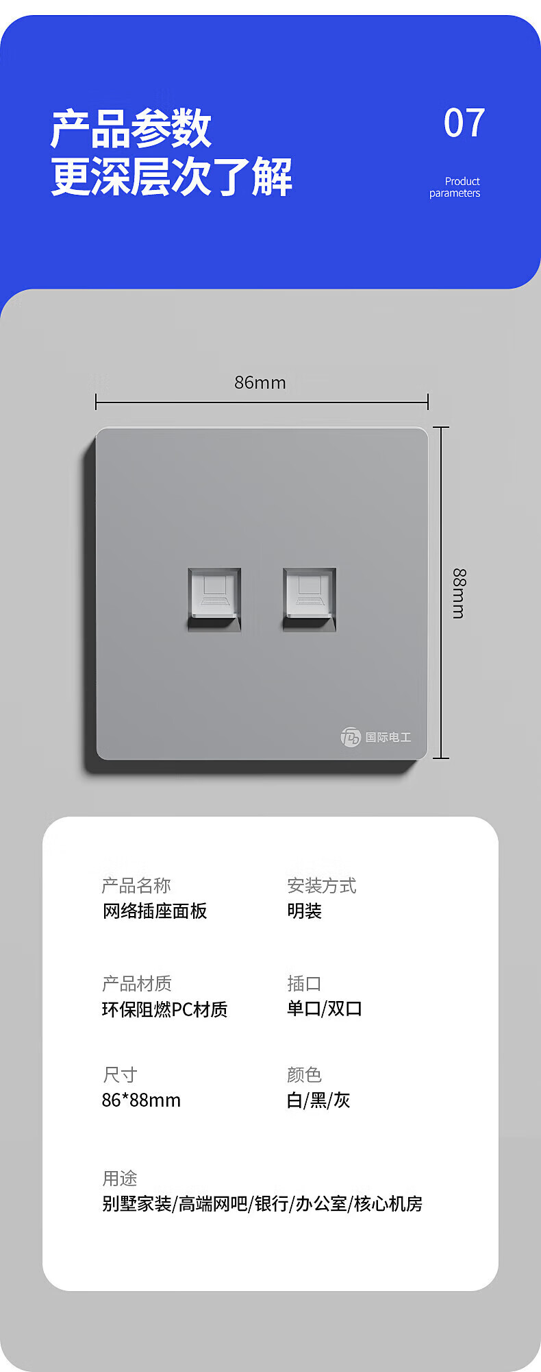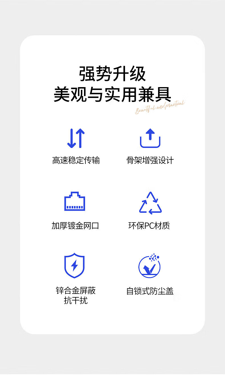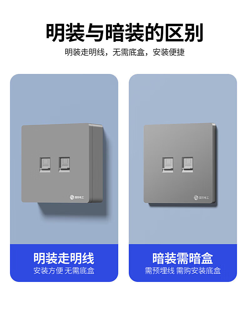 Type 86 computer socket Gigabit network with information panel ultra-thin surface-mounted computer network socket TV telephone computer network port panel weak current self-contained exposed box computer network cable socket Category 6 Super single network surface-mounted white