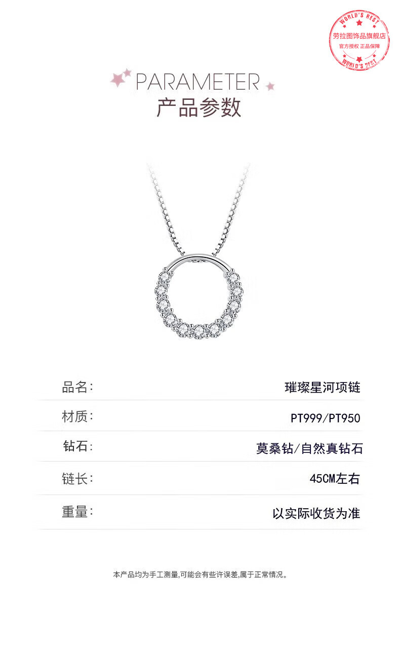 LAOLATU 999 platinum necklace for women pt950 platinum dazzling galaxy pendant Chinese Valentine's Day gift for girlfriend and wife PT950 platinum moissanite pendant (11 pieces) PT950 platinum box chain (chain shown in the main picture)