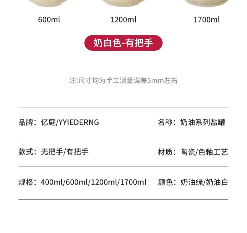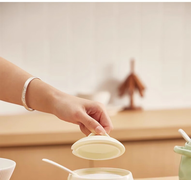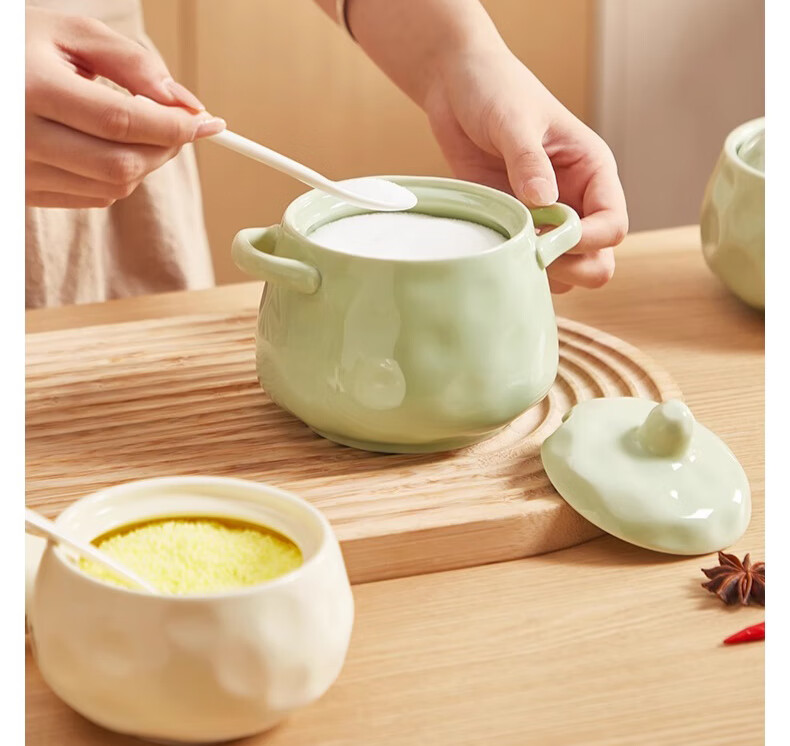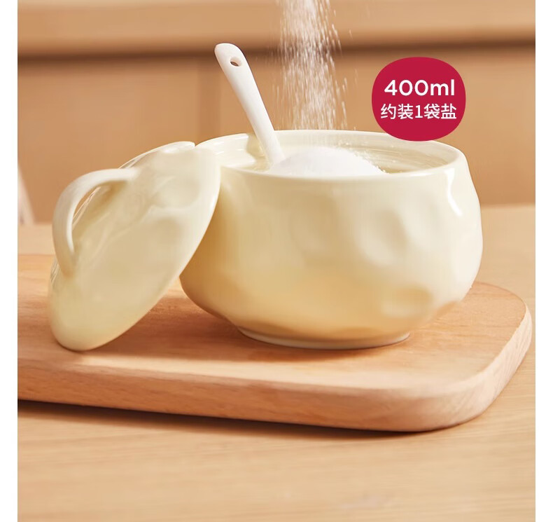 WELLMEET salt shaker large capacity ceramic with spoon lid kitchen household high temperature resistant chili oil lard seasoning jar spice storage box no handle milk white 400ml - free spoon