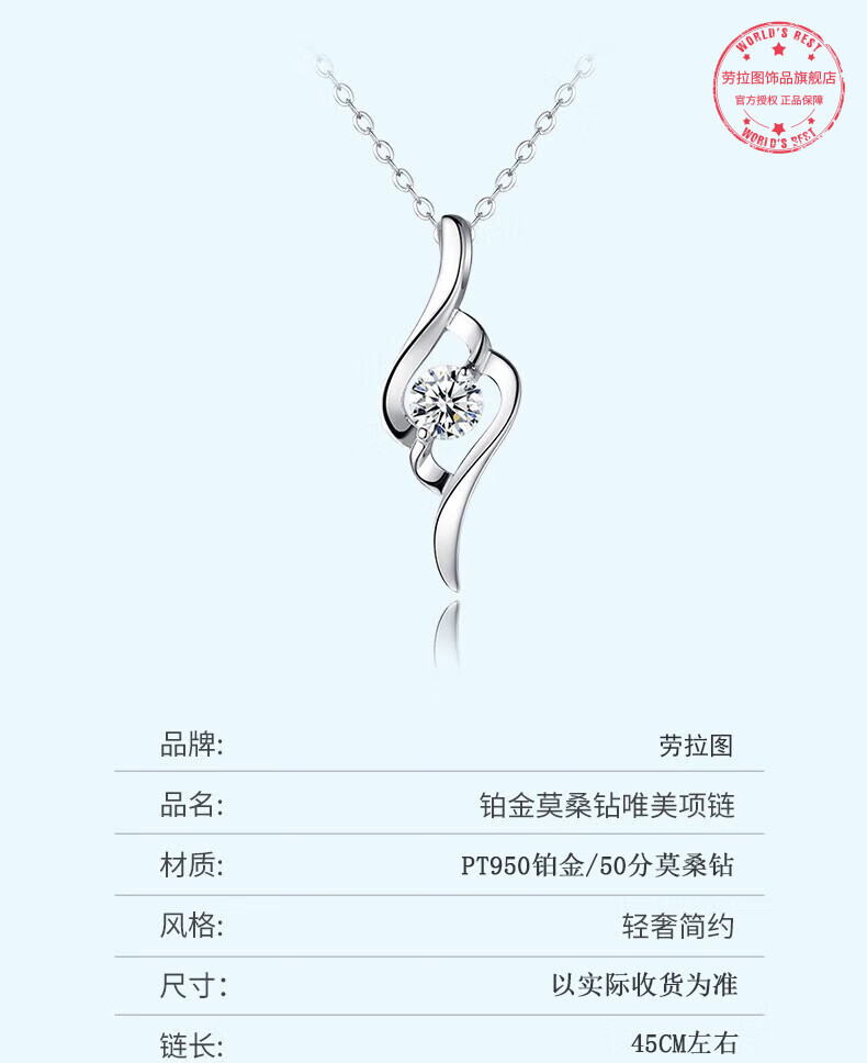 LAOLATU 999 platinum necklace for women PT950 platinum Cupid fashionable and versatile Chinese Valentine's Day gift for girlfriend and wife PT950 platinum moissanite pendant 999 pure platinum O-shaped chain (as shown in the picture)