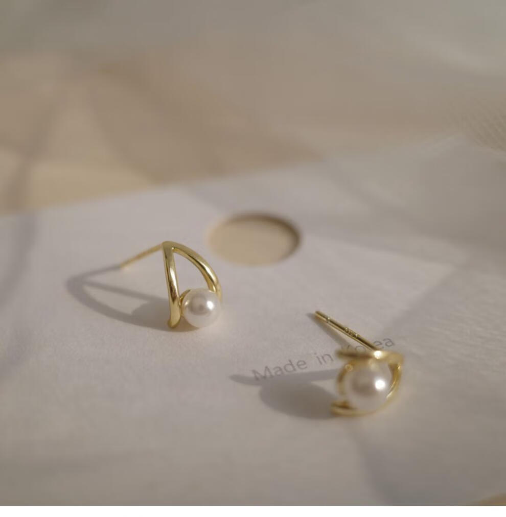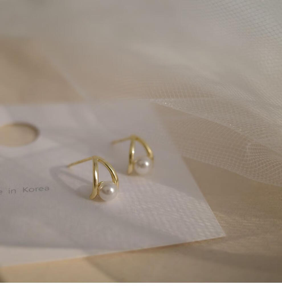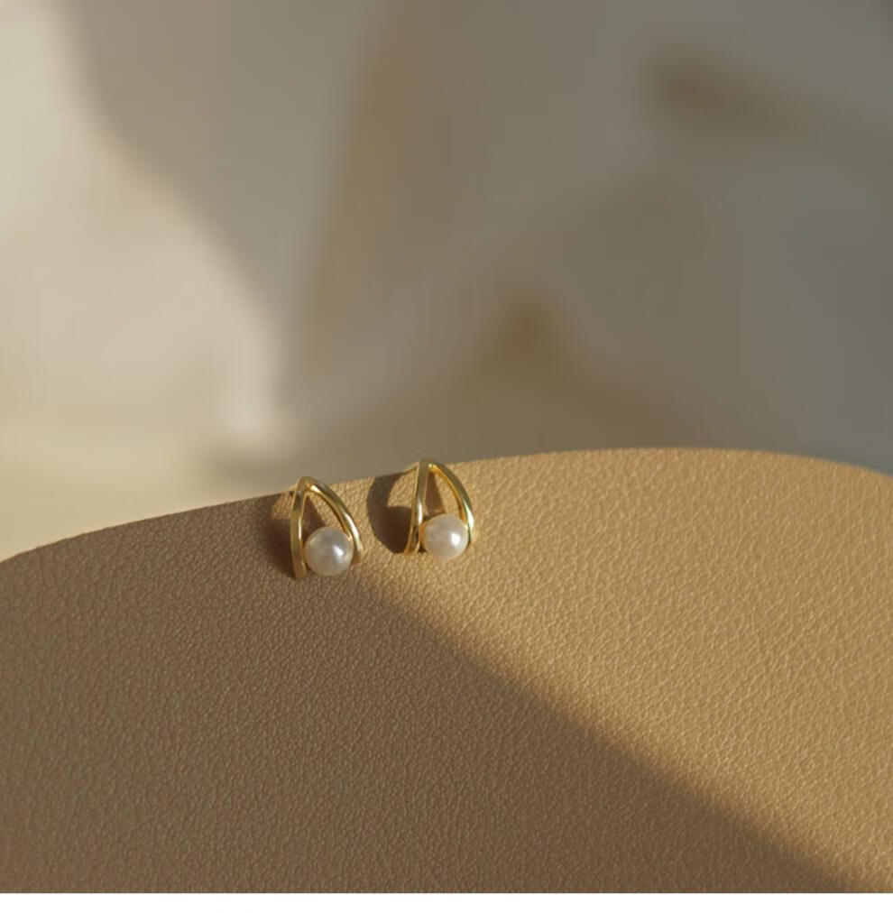 Auspicious Goddess S999 sterling silver needle pearl earrings to support pierced ears, compact earrings, niche sleep-free earrings 2025 new ear clips S999 sterling silver needle pearl earrings