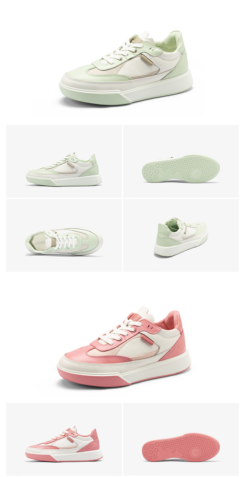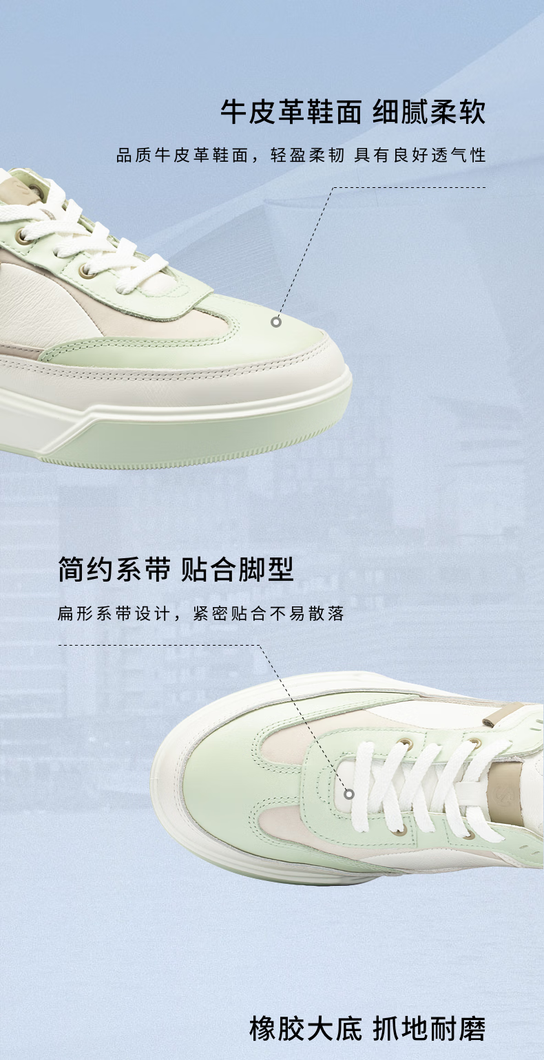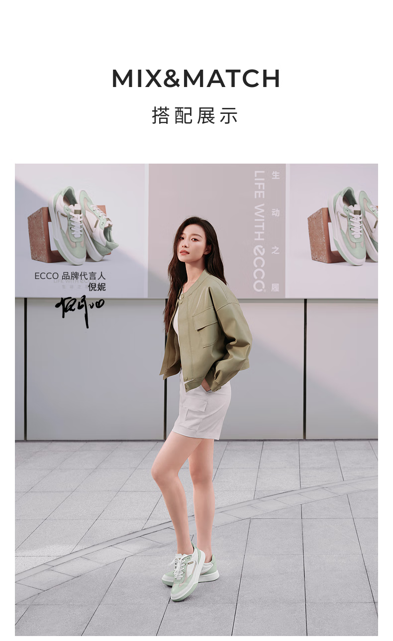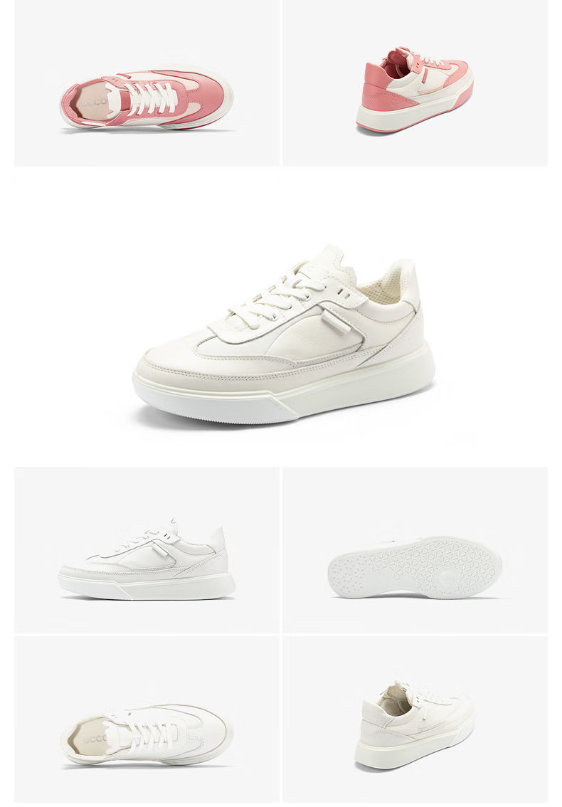 ECCO flat shoes for women, Ni Ni's same style cowhide sneakers, lace-up casual sports shoes, street 272803, white/off-white 27280356946 39