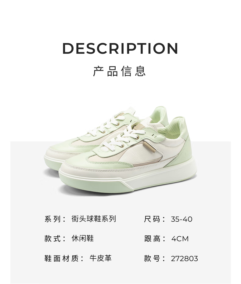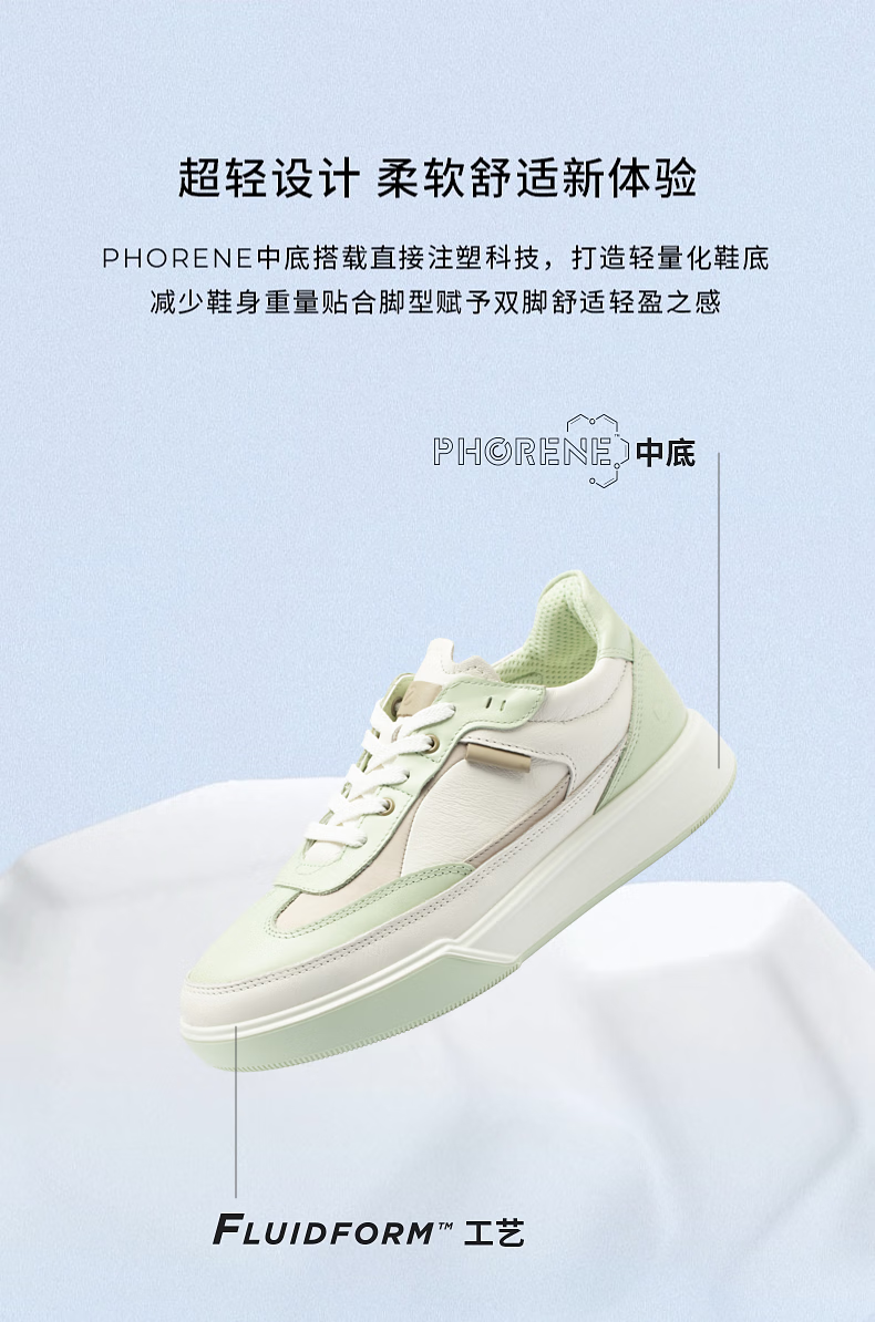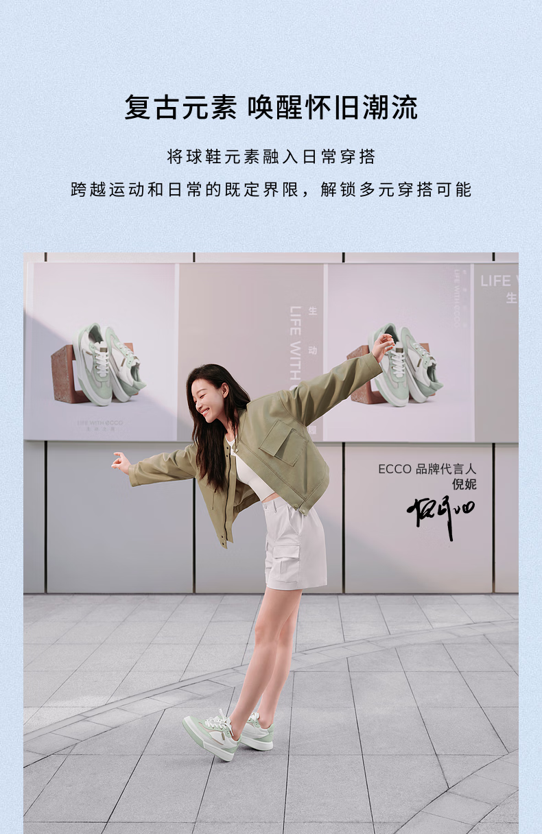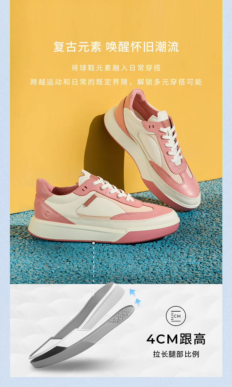 ECCO flat shoes for women, Ni Ni's same style cowhide sneakers, lace-up casual sports shoes, street 272803, white/off-white 27280356946 39