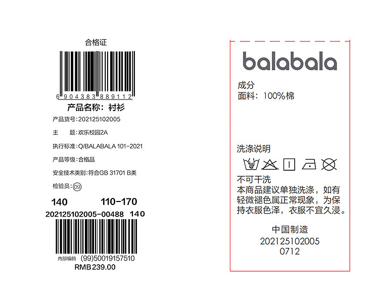 Balabala miiiiiichanIP long-sleeved shirt girls striped shirt college style comfortable and versatile blue tone 00488 160
