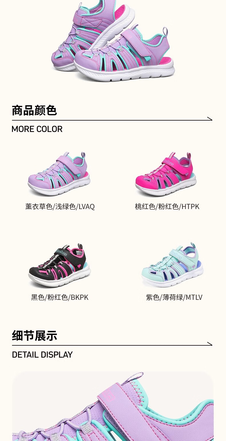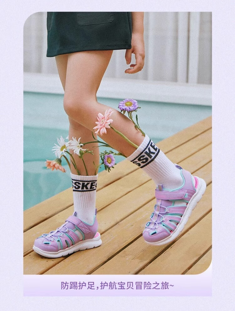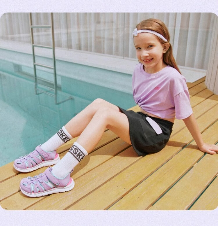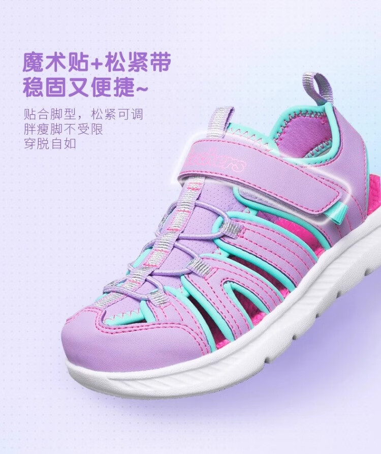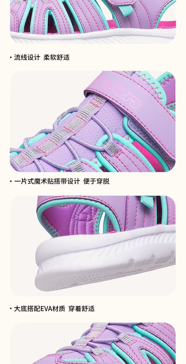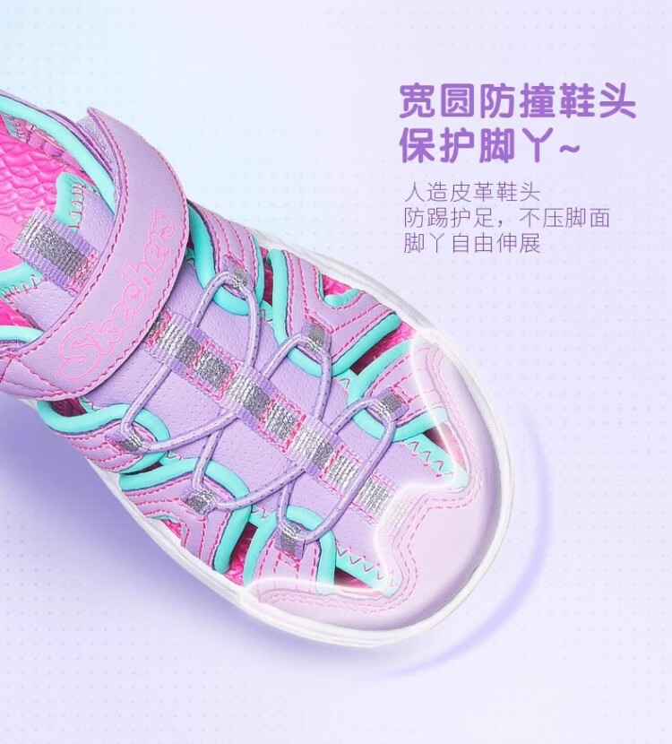 Skechers children's summer girls' toe sandals big children's beach shoes princess girls shoes 302100L pink/pink/HTPK 36