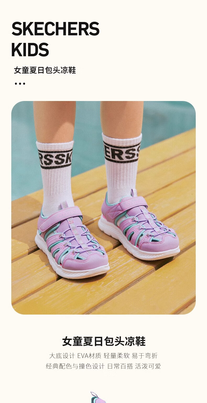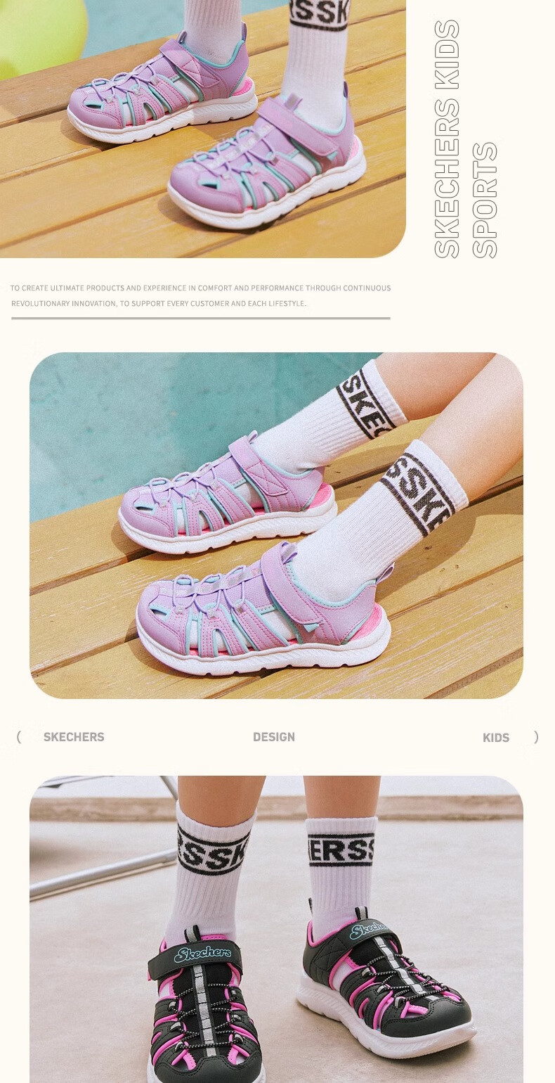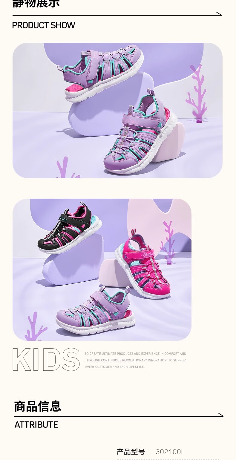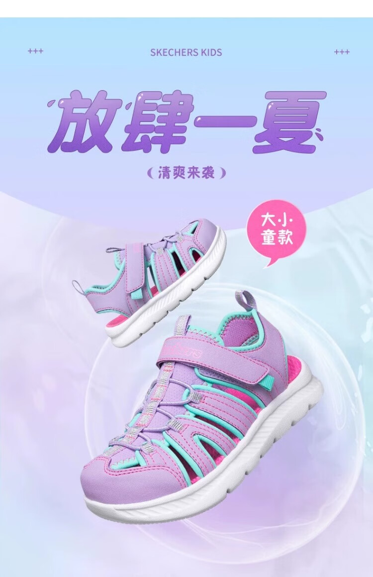 Skechers children's summer girls' toe sandals big children's beach shoes princess girls shoes 302100L pink/pink/HTPK 36