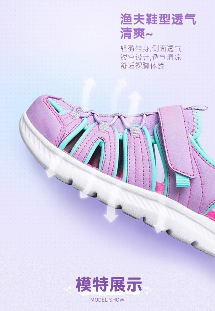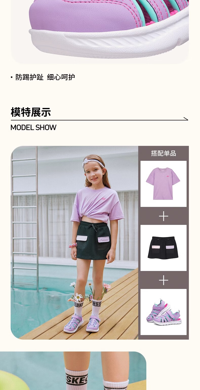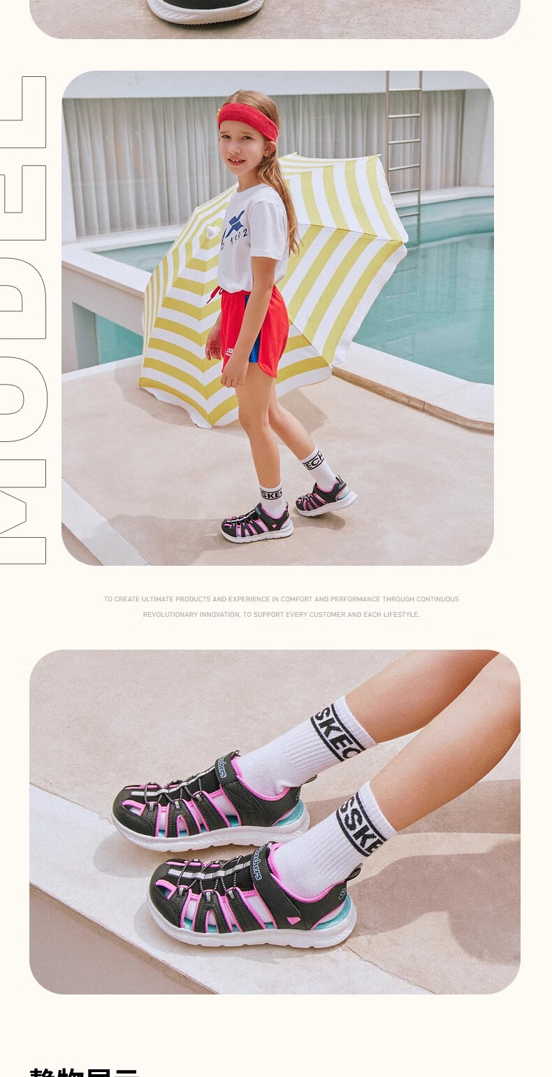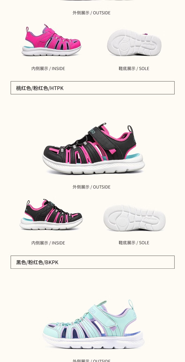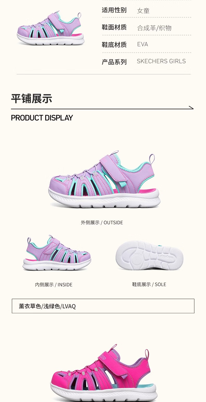 Skechers children's summer girls' toe sandals big children's beach shoes princess girls shoes 302100L pink/pink/HTPK 36