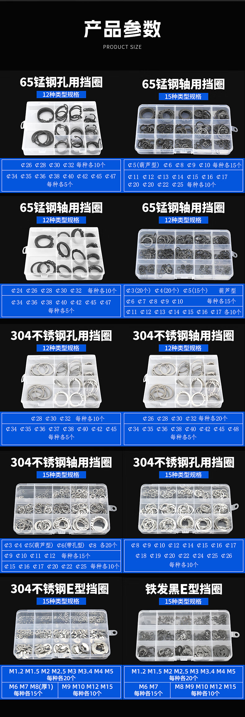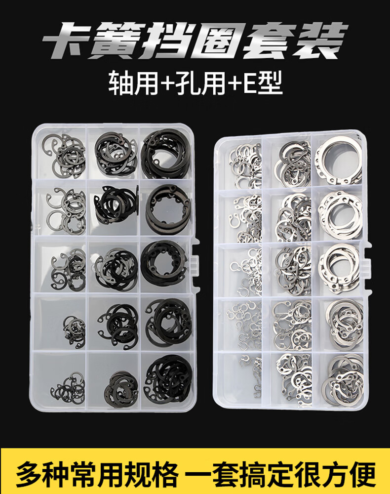 Baodefeng 65m manganese steel A-type shaft with retaining ring stainless steel hole with C-shaped inner circlip elastic E-type card yellow outer caliper set 65 manganese black shaft with circlip M3-17 set