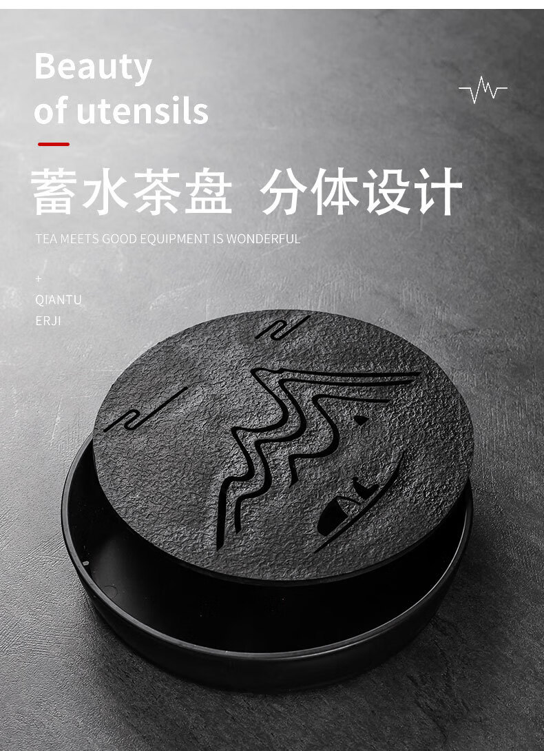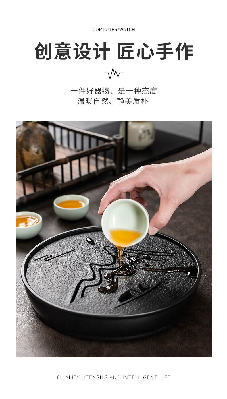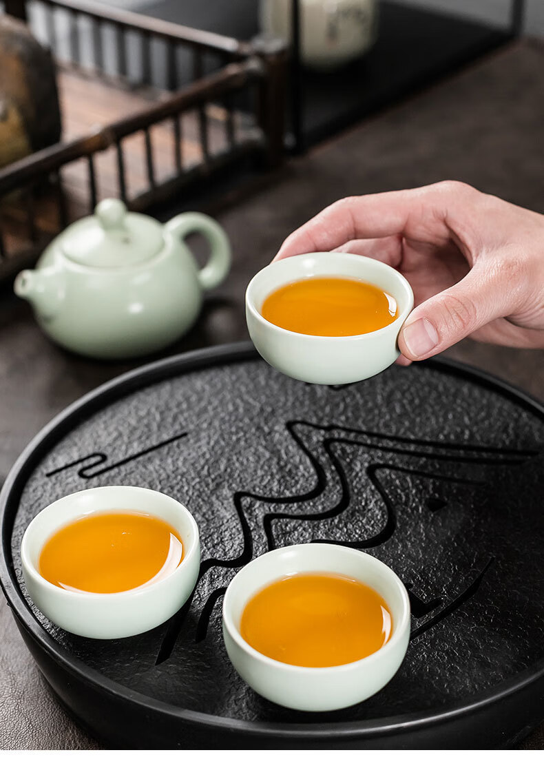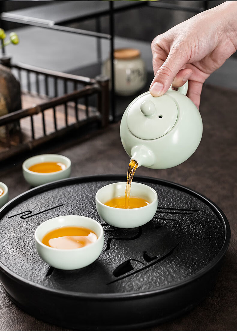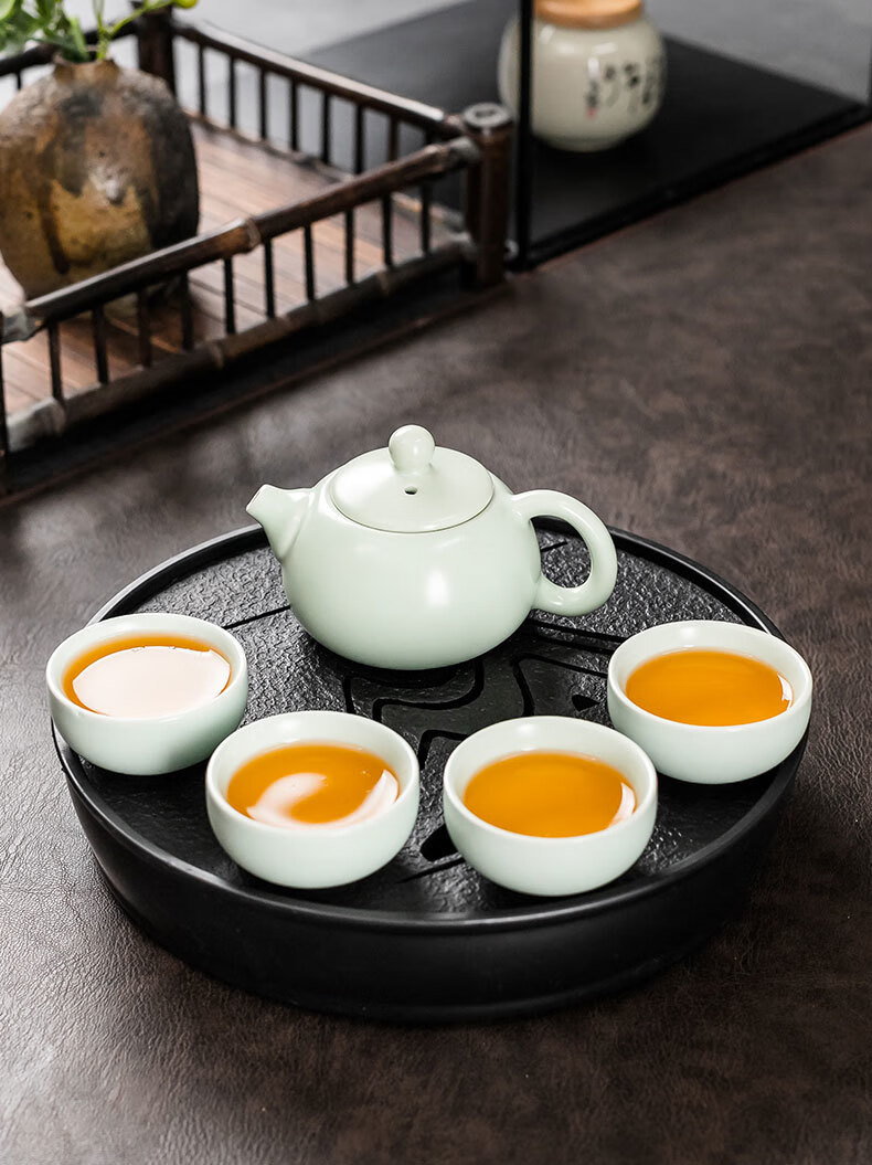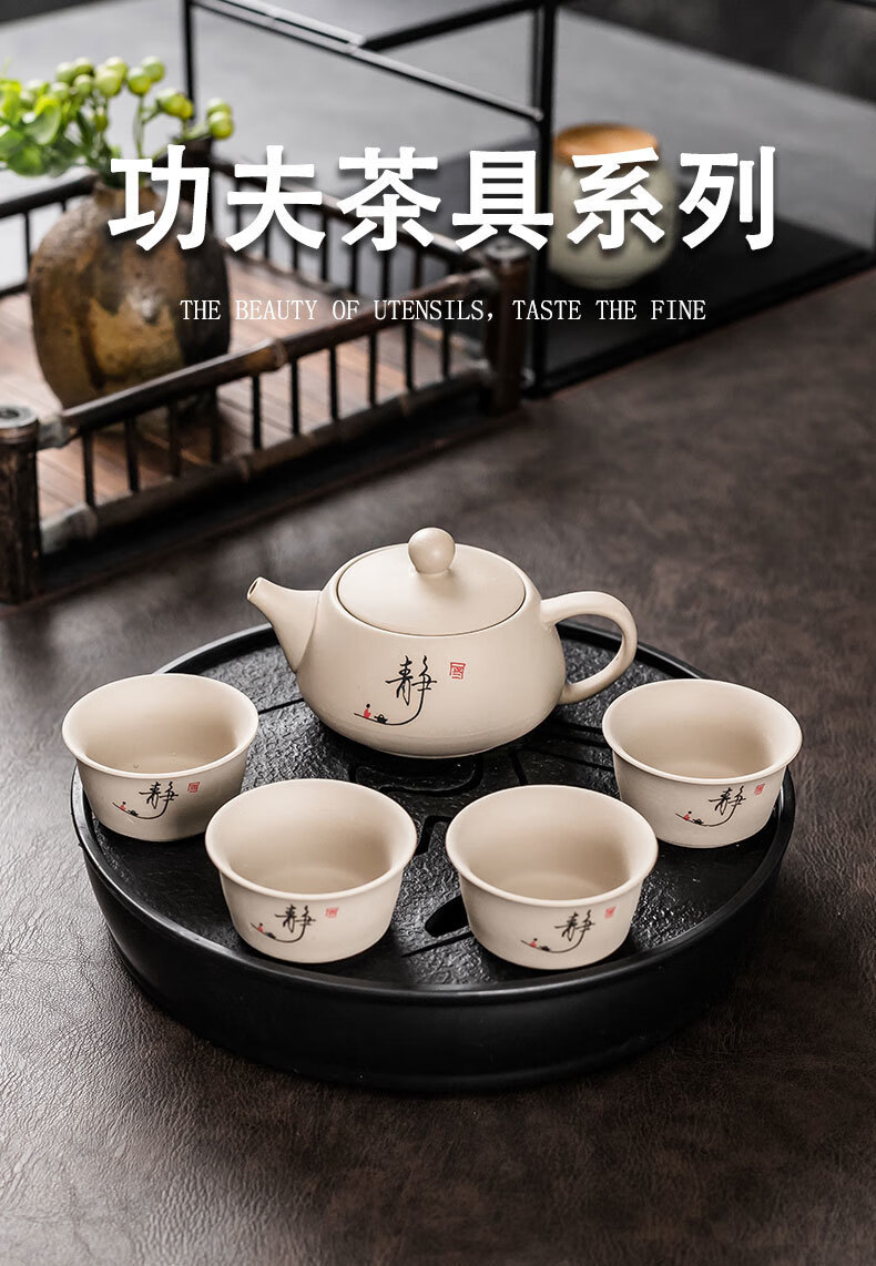 An Junsheng Kung Fu tea set tea tray small set one pot four cups portable home dormitory hotel teapot tea cup simple black purple sand 1 pot four cups + melamine round black plate - Yuanshan
